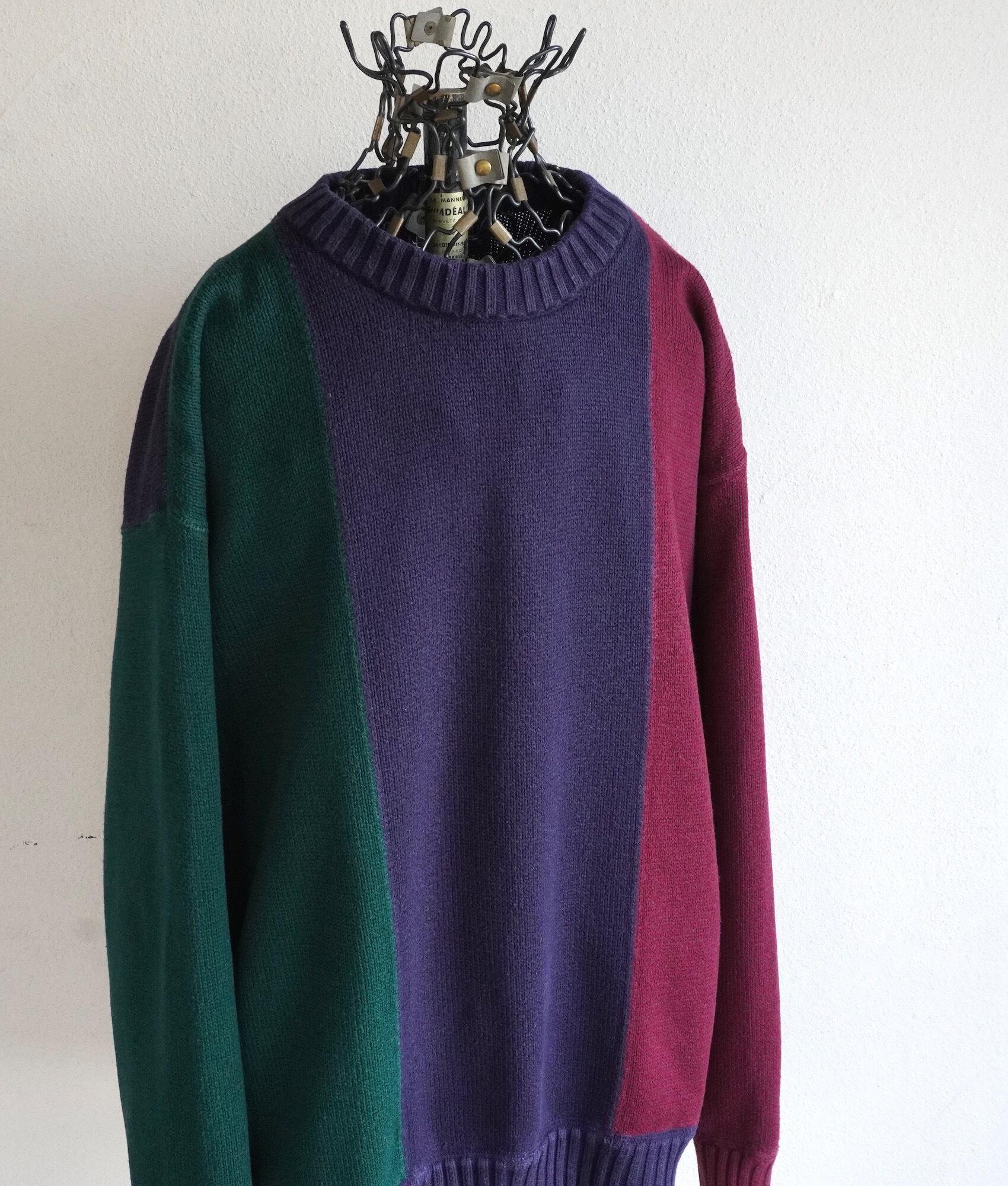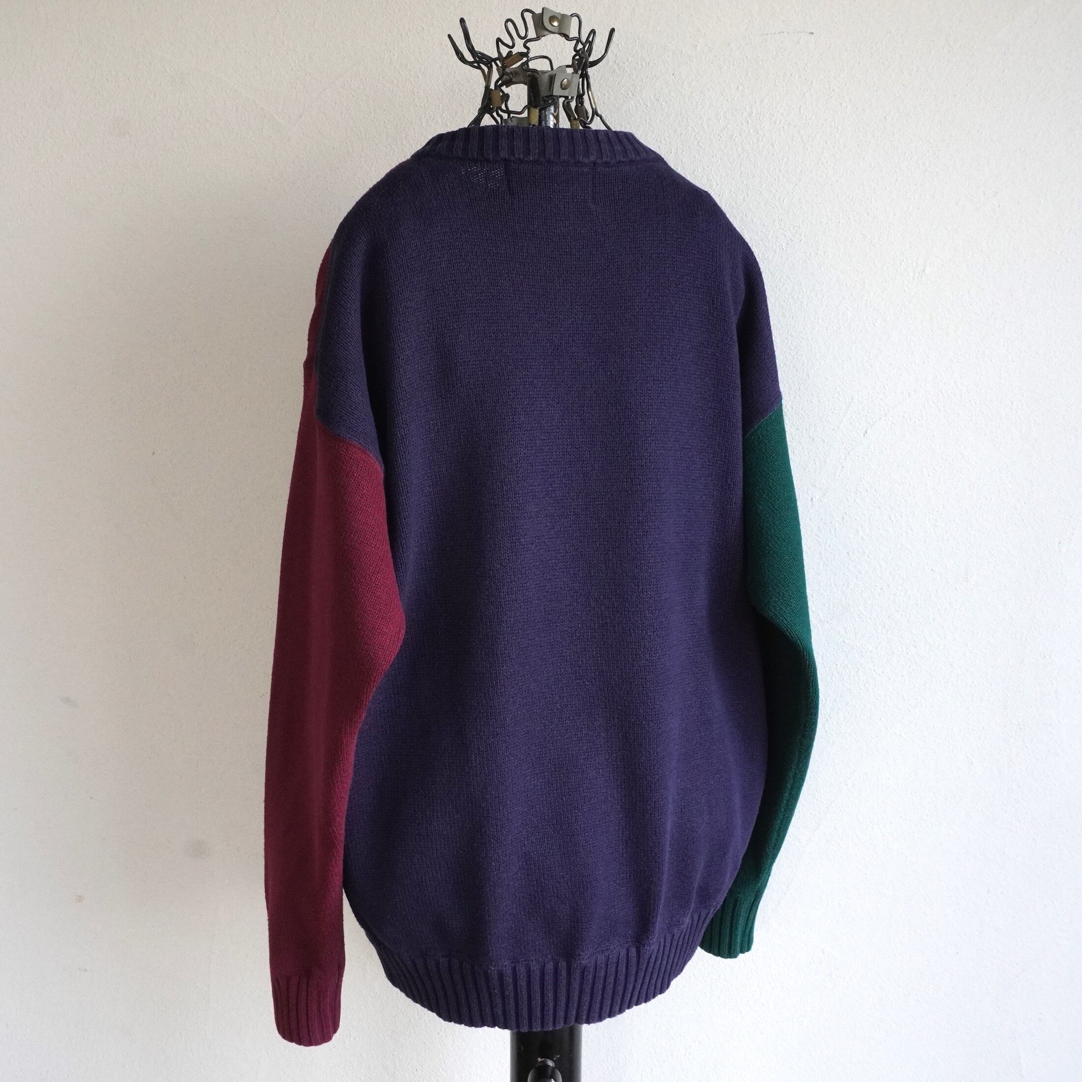 1990's [JANSPORT] カラーブロック 100%コットン クルーネック ニットセーター ネイビー×グリーン×ワイン 表記(men's M) マルチカラー ヴィンテージ | MAGNOLIA WEBSTORE
