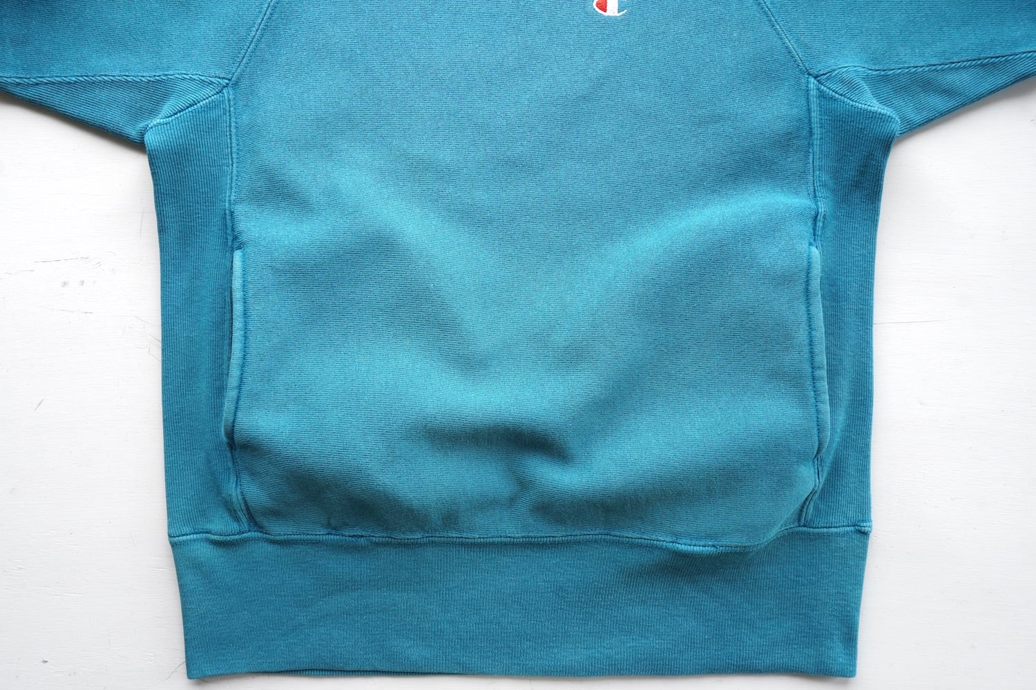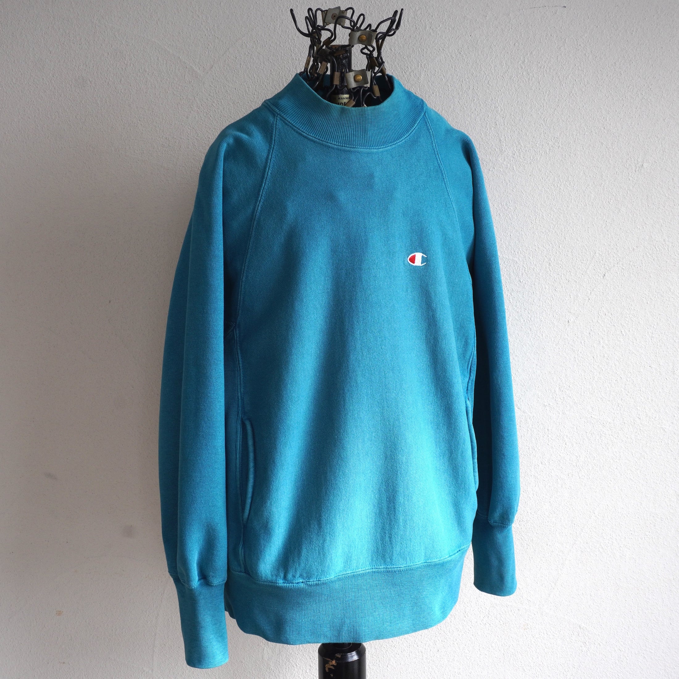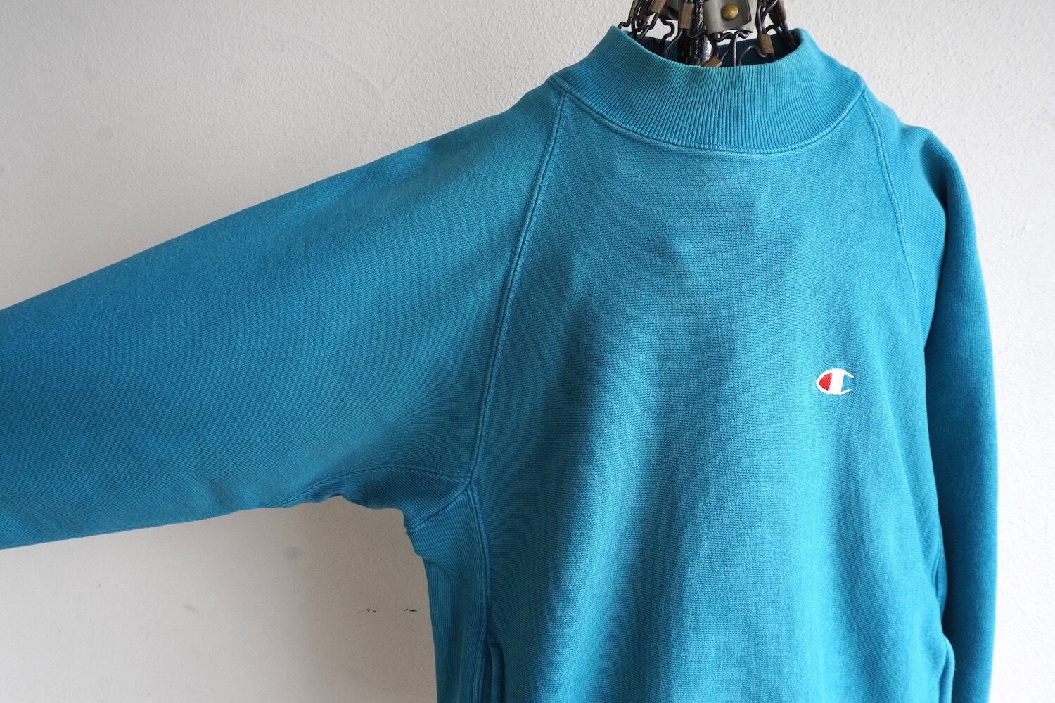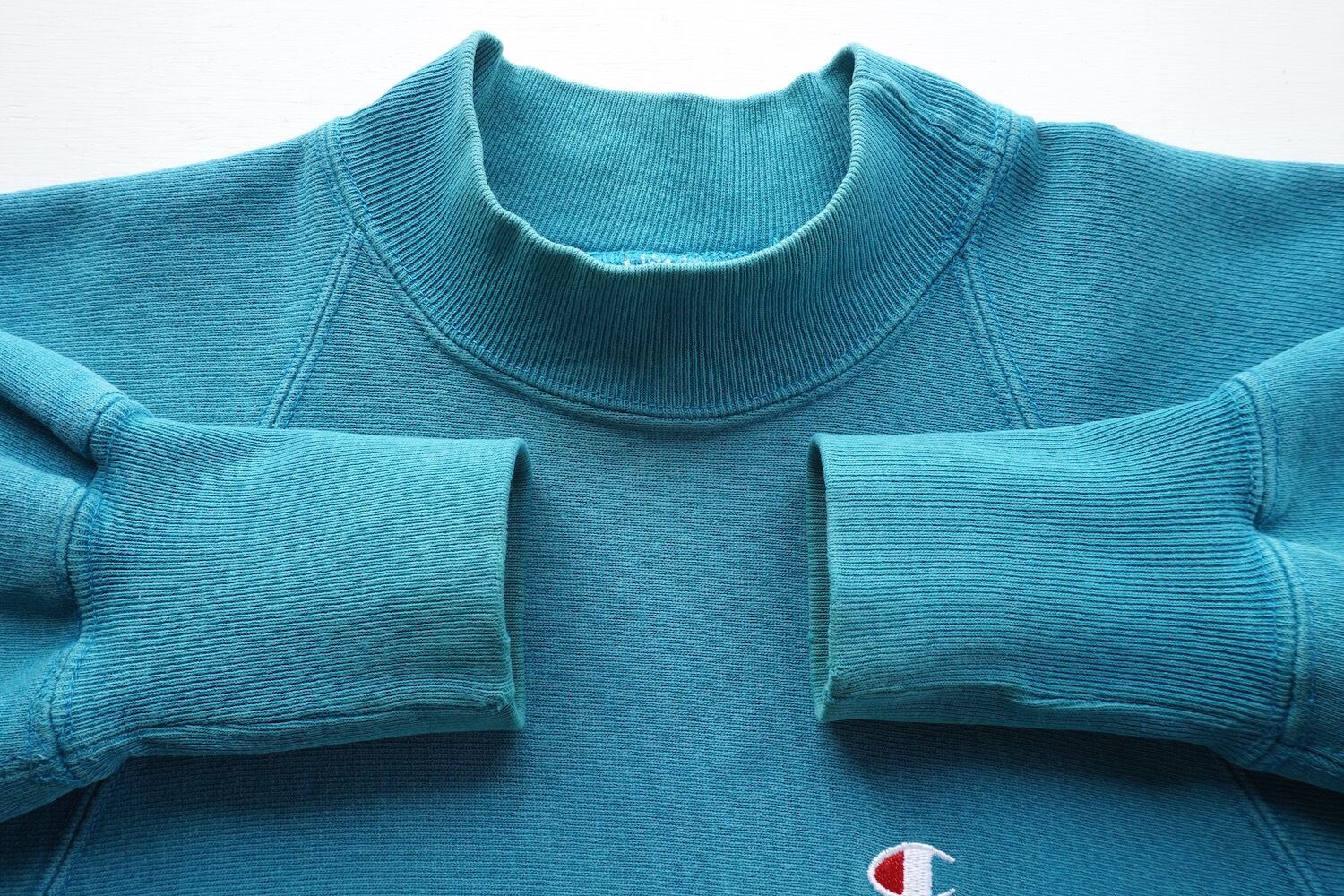 1990's USA製 [Champion] "REVERSE WEAVE" ラグラン・ミドルネック・ポケット付 スウェット 目付き 無地 ティール 表記(men's SMALL) リバースウィーブ チャンピオン ヴィンテージ | MAGNOLIA WEBSTORE