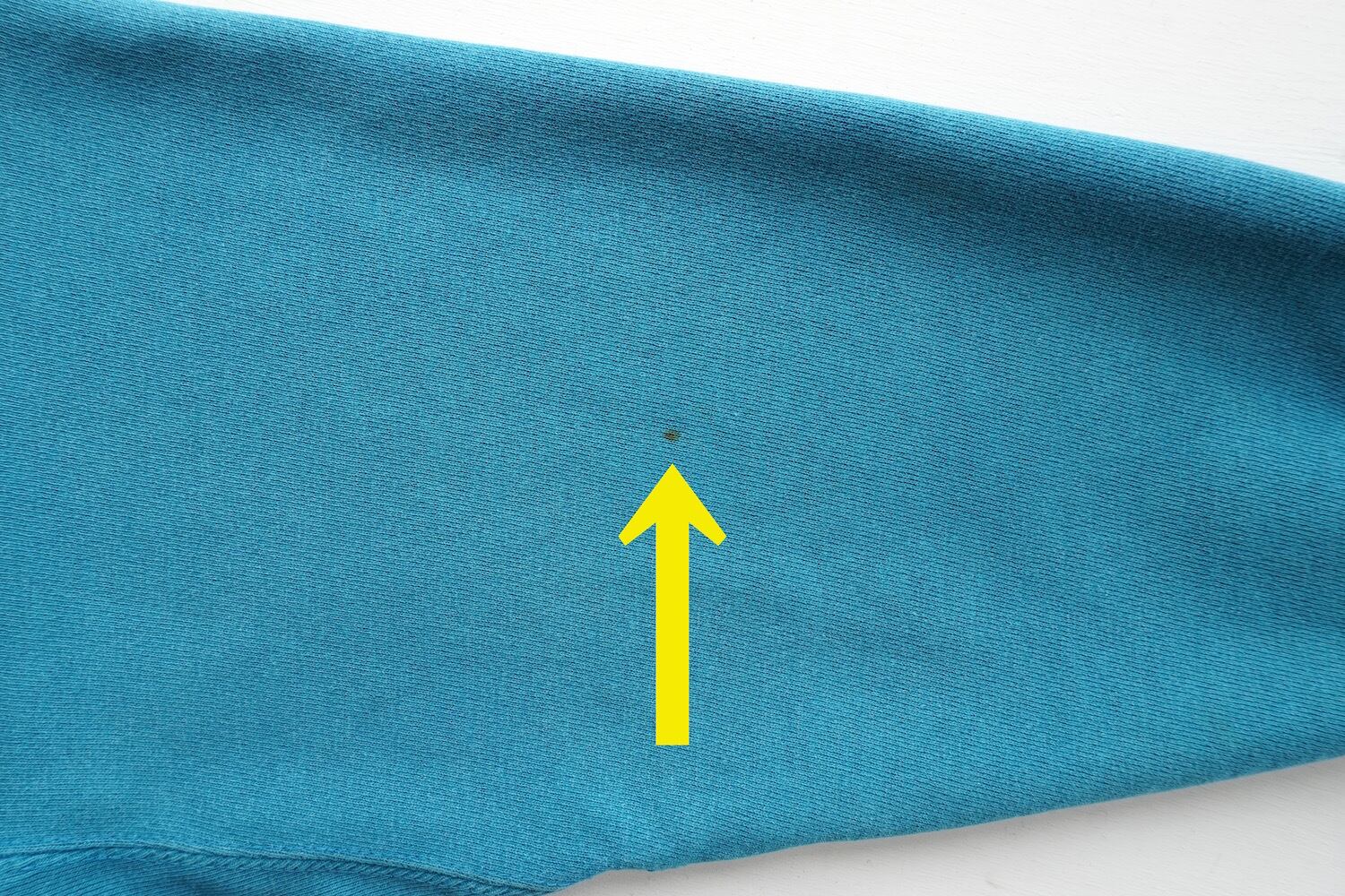 【コンディション】USED感・目立たない程度の薄小シミ/薄汚れ・左袖に小シミ・袖リブに細かい擦れダメージはありますが、その他特に目立つダメージはありません。
