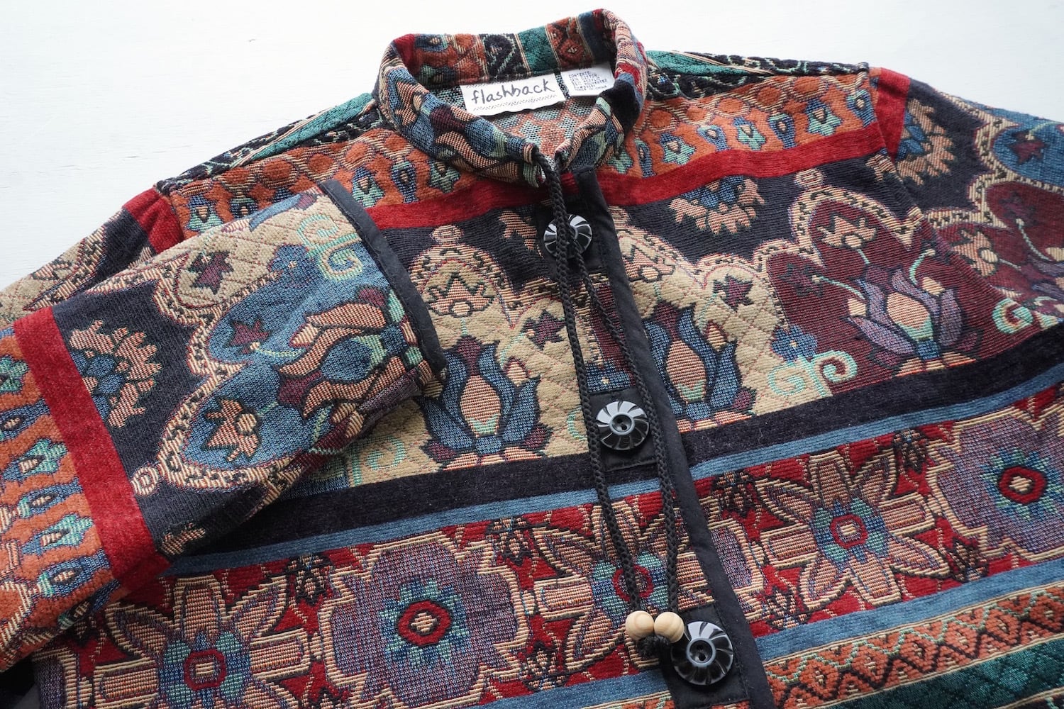 ペルシャ絨毯の様なカーペット柄が印象的な、タペストリージャケット。