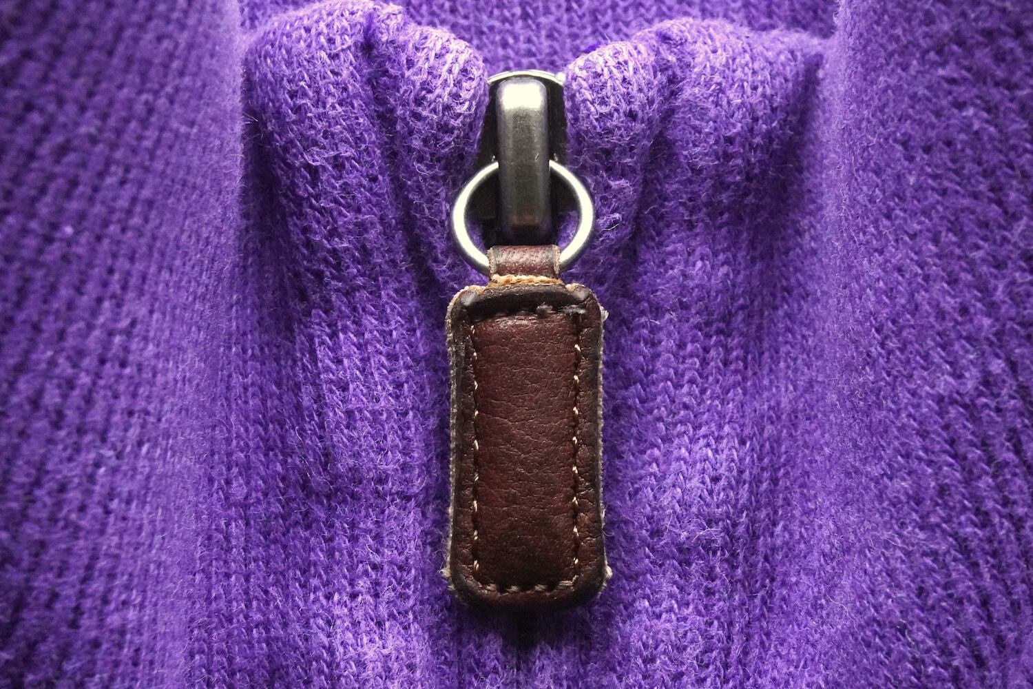 ワンポイントのポニー刺繍と、レザーのジッパー引手が良いアクセント。