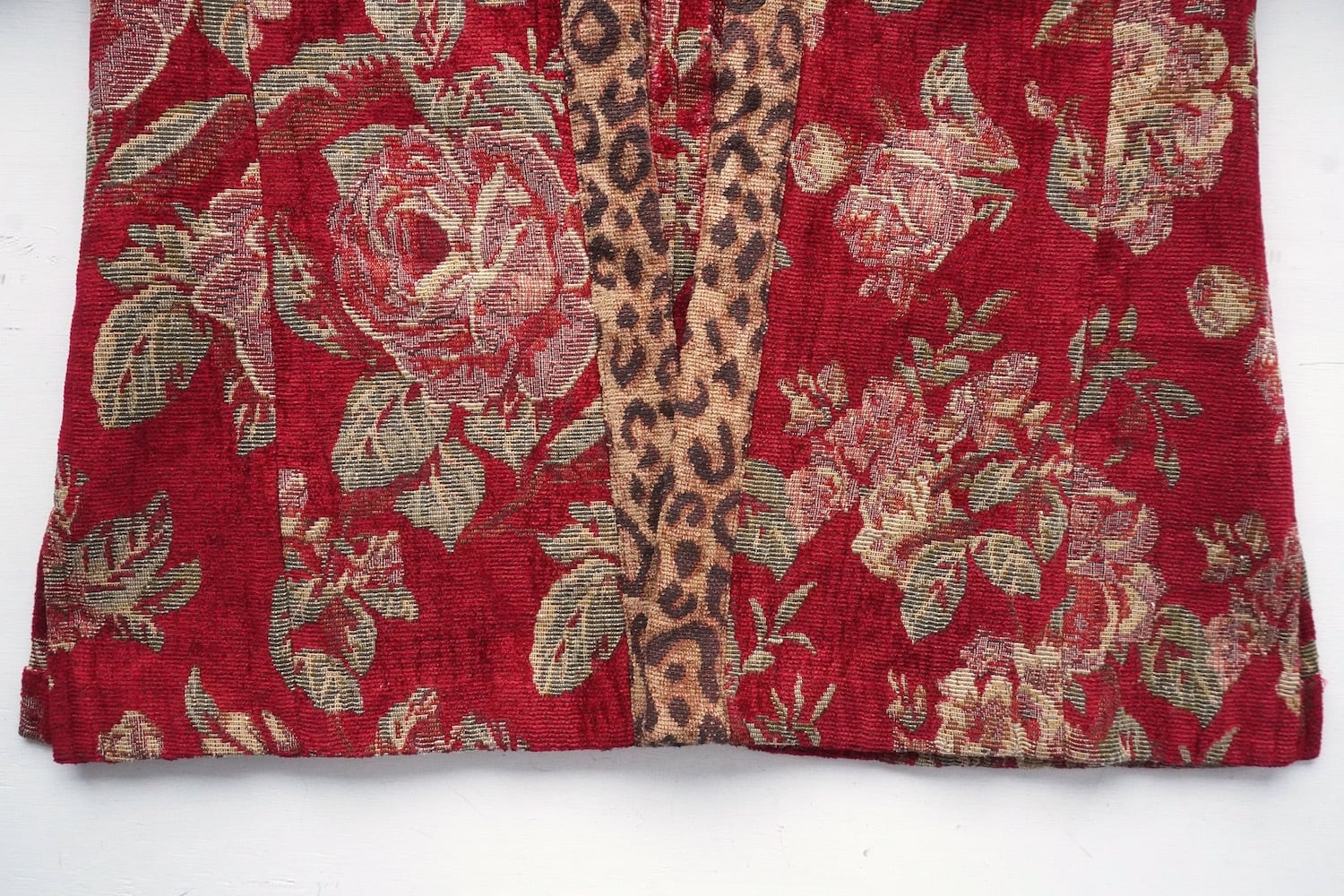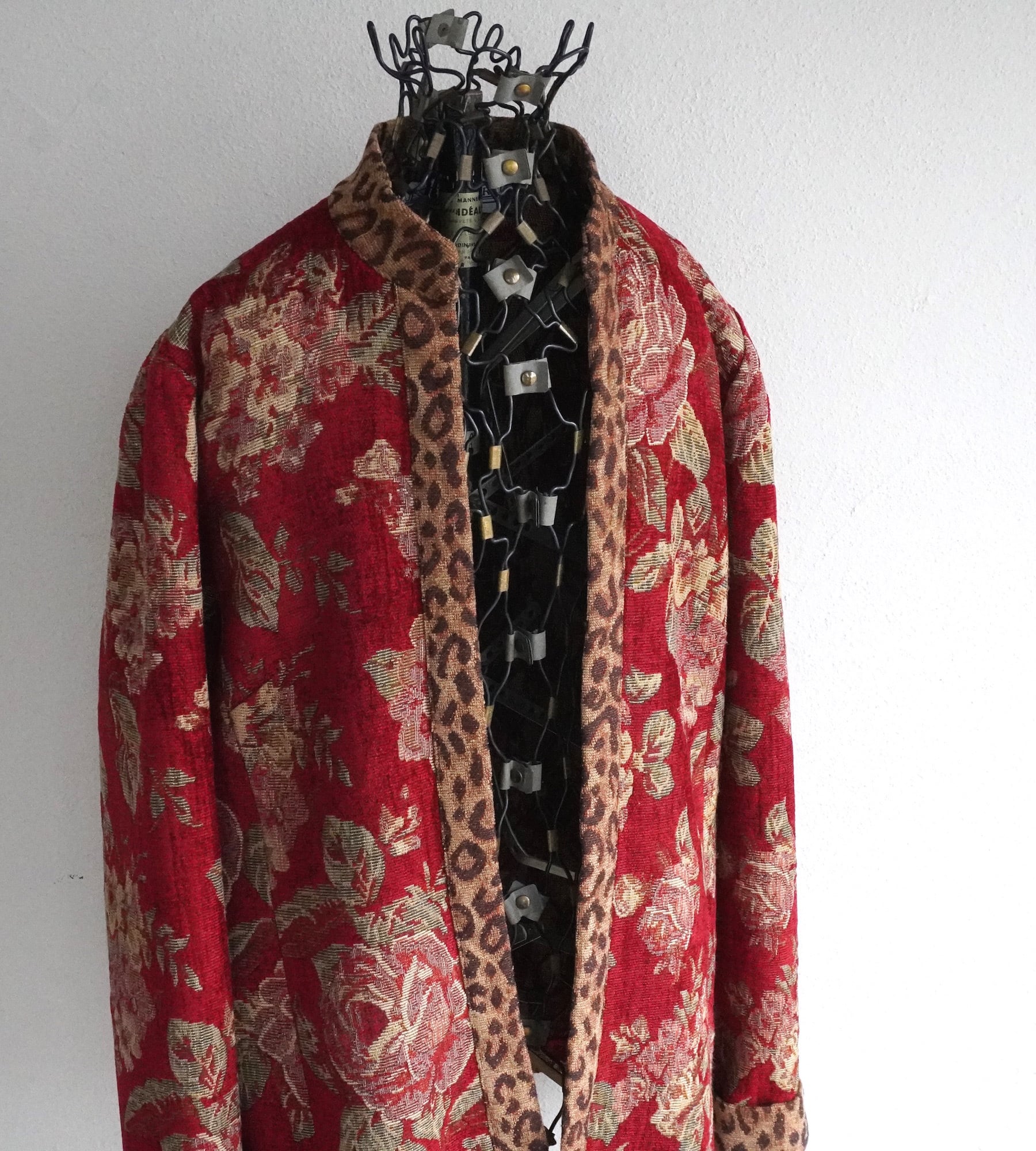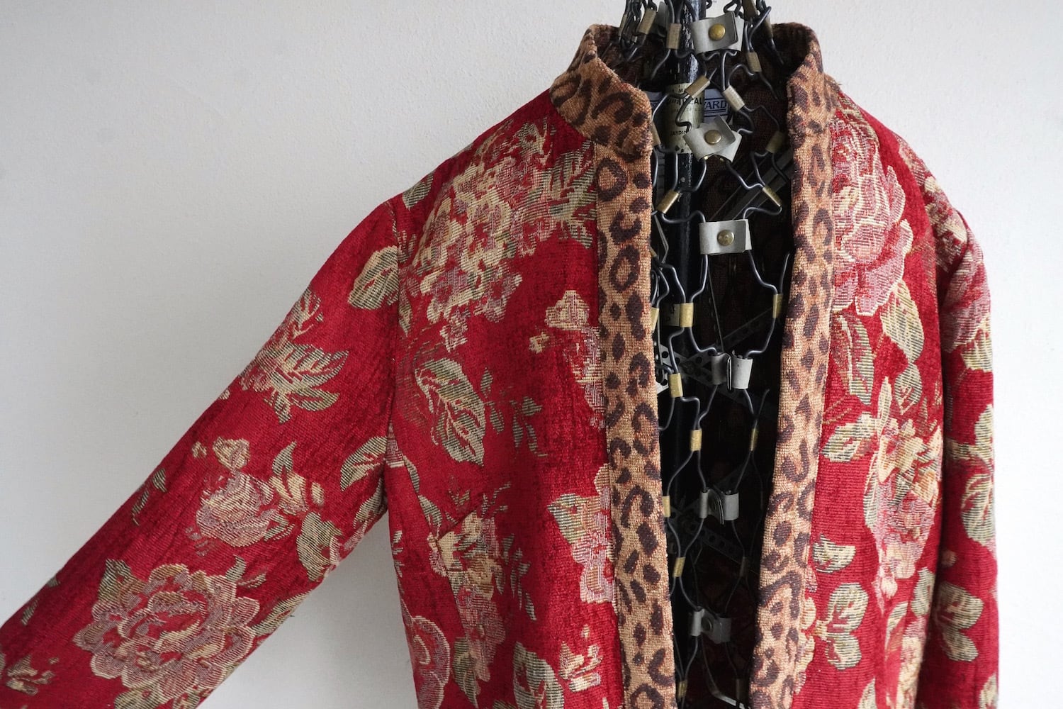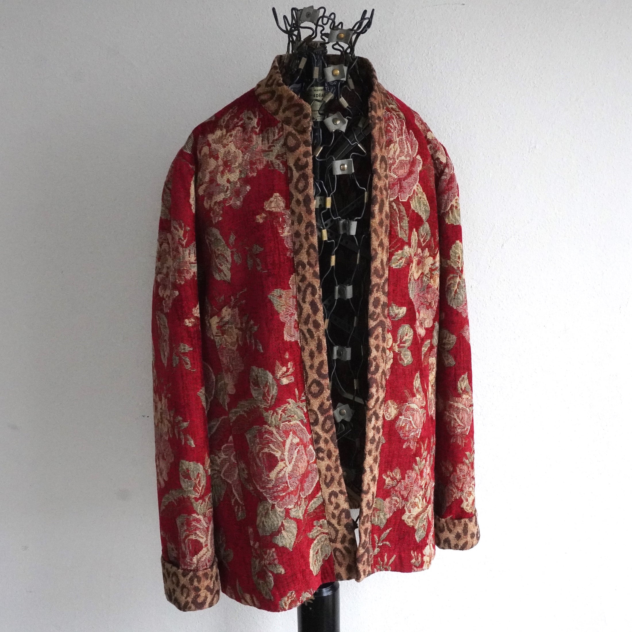 エレガントなフローラル柄にレオパードのトリミングがアクセントの、タペストリー(ゴブラン)ジャケット。