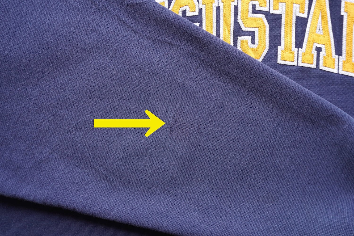 しっかりした生地感のヘヴィーウェイトで、スクールカラーリングのネイビー×ゴールドが◎。