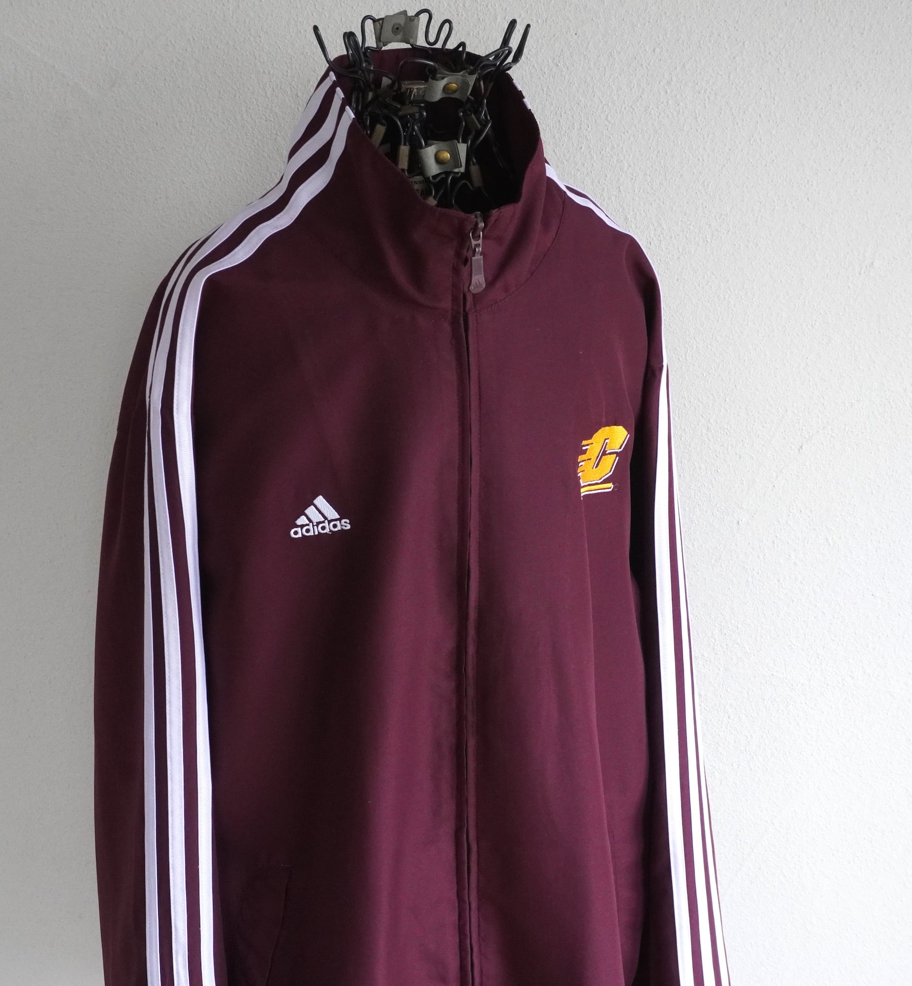 2010's [adidas] 中央ミシガン大学 "CHIPPEWAS" 3ストライプス ポリエステルトラックジャケット マルーン 表記(men's M) カレッジ ハイネック フルジップ アディダス | MAGNOLIA WEBSTORE