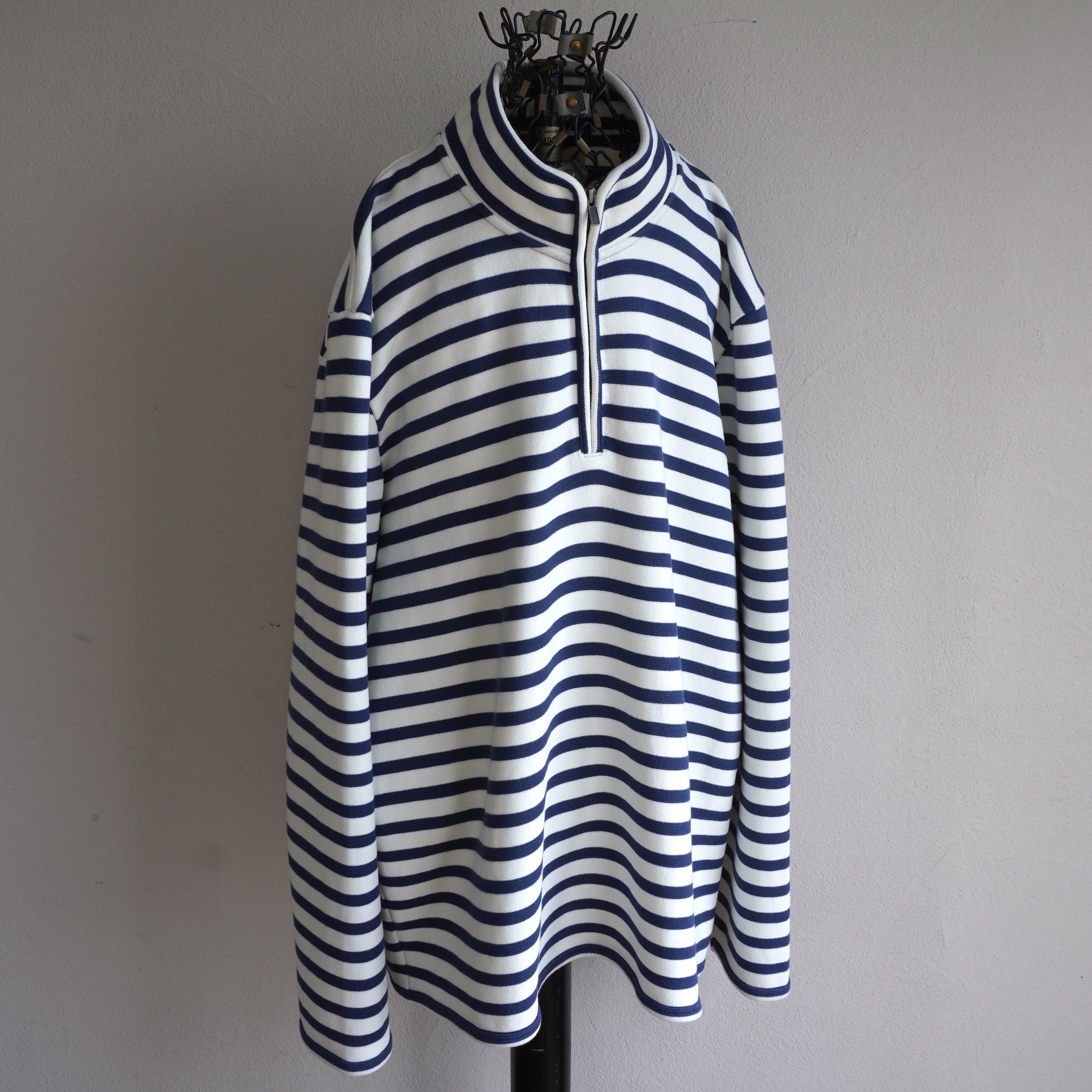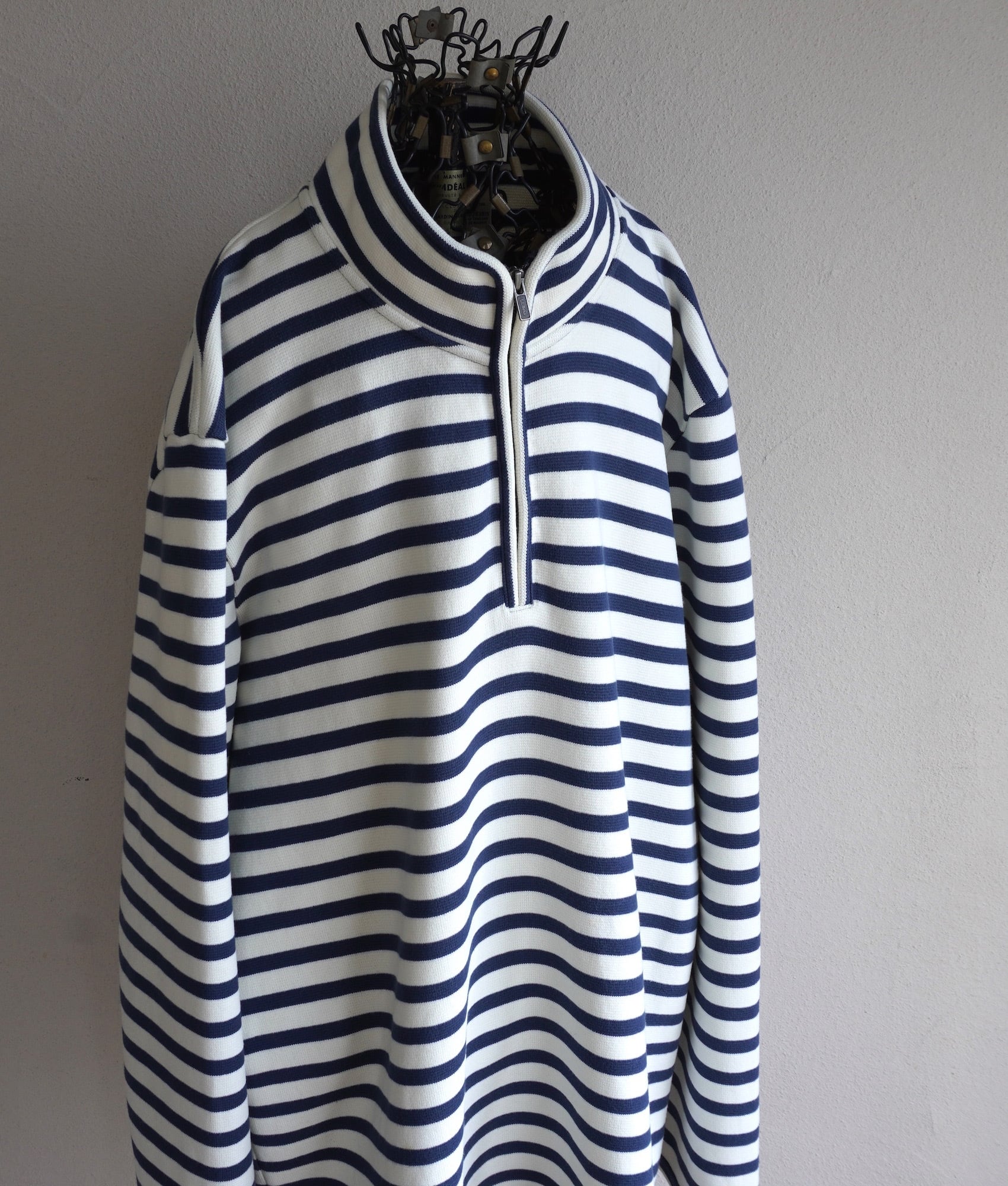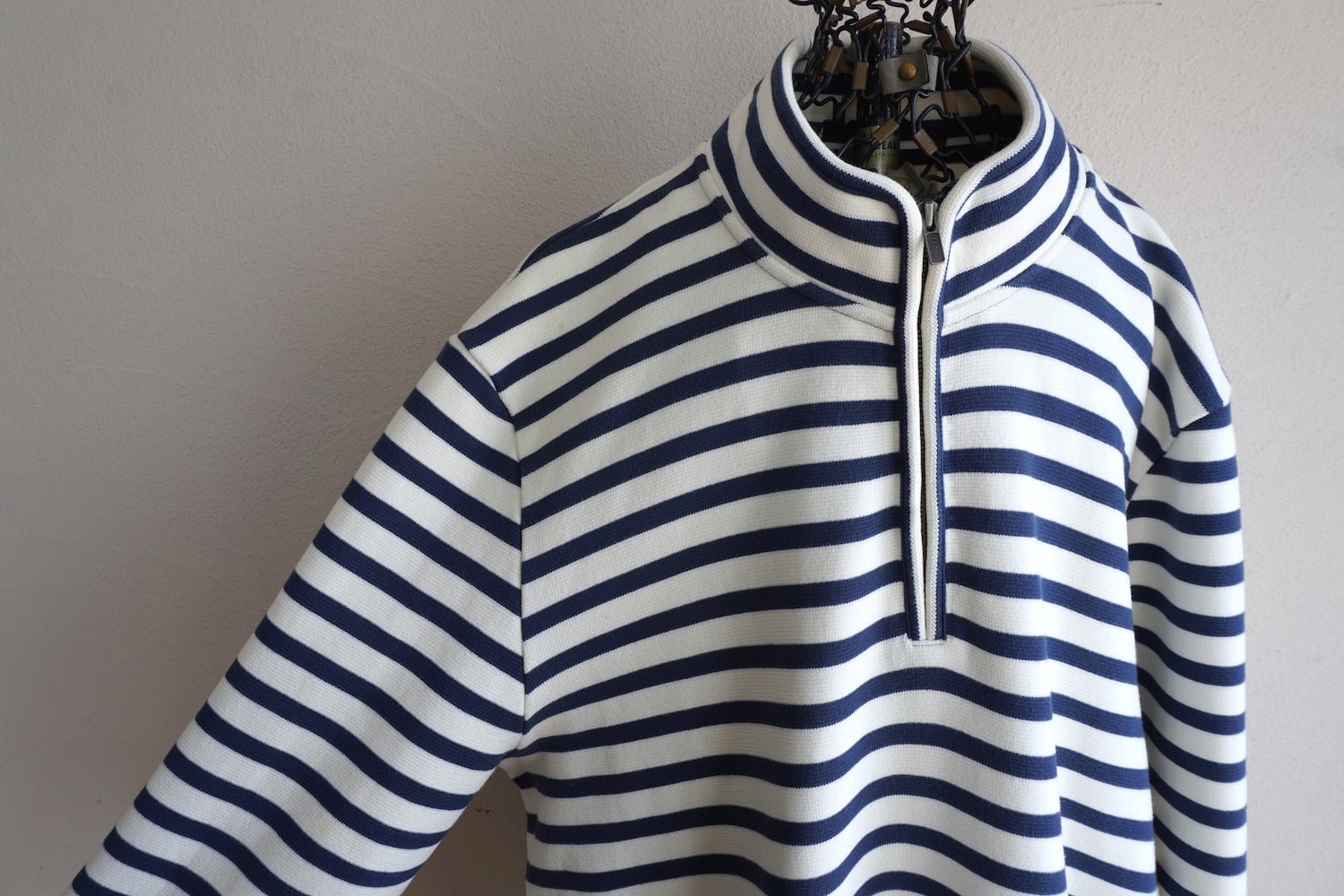 ホワイト×ネイビー定番ボーダー柄の、ハーフジップコットンプルオーバー。