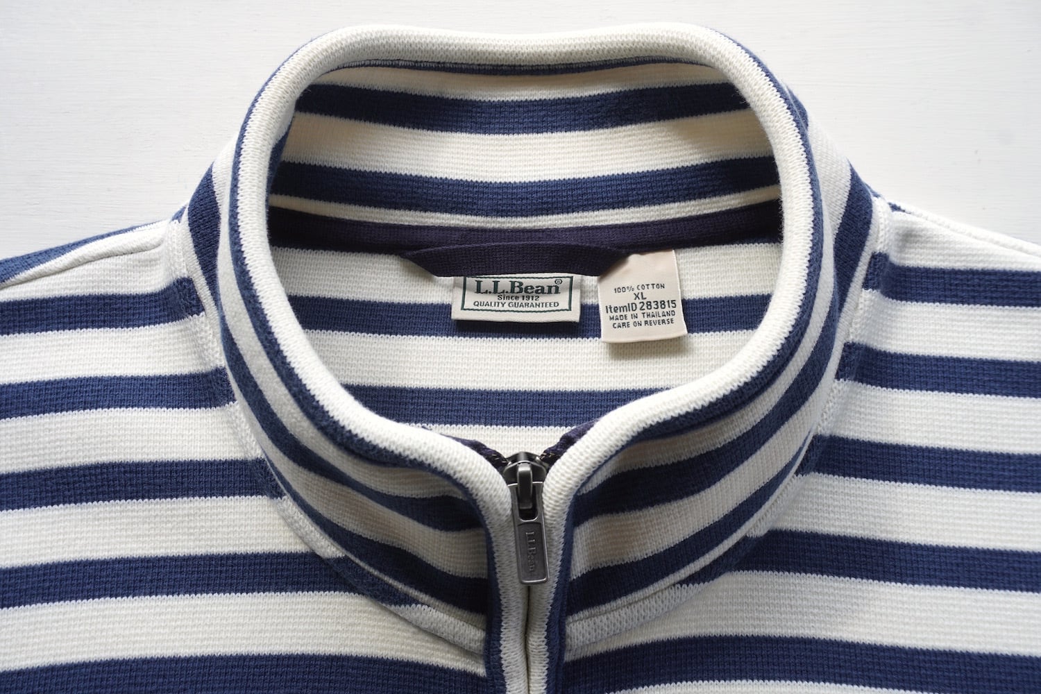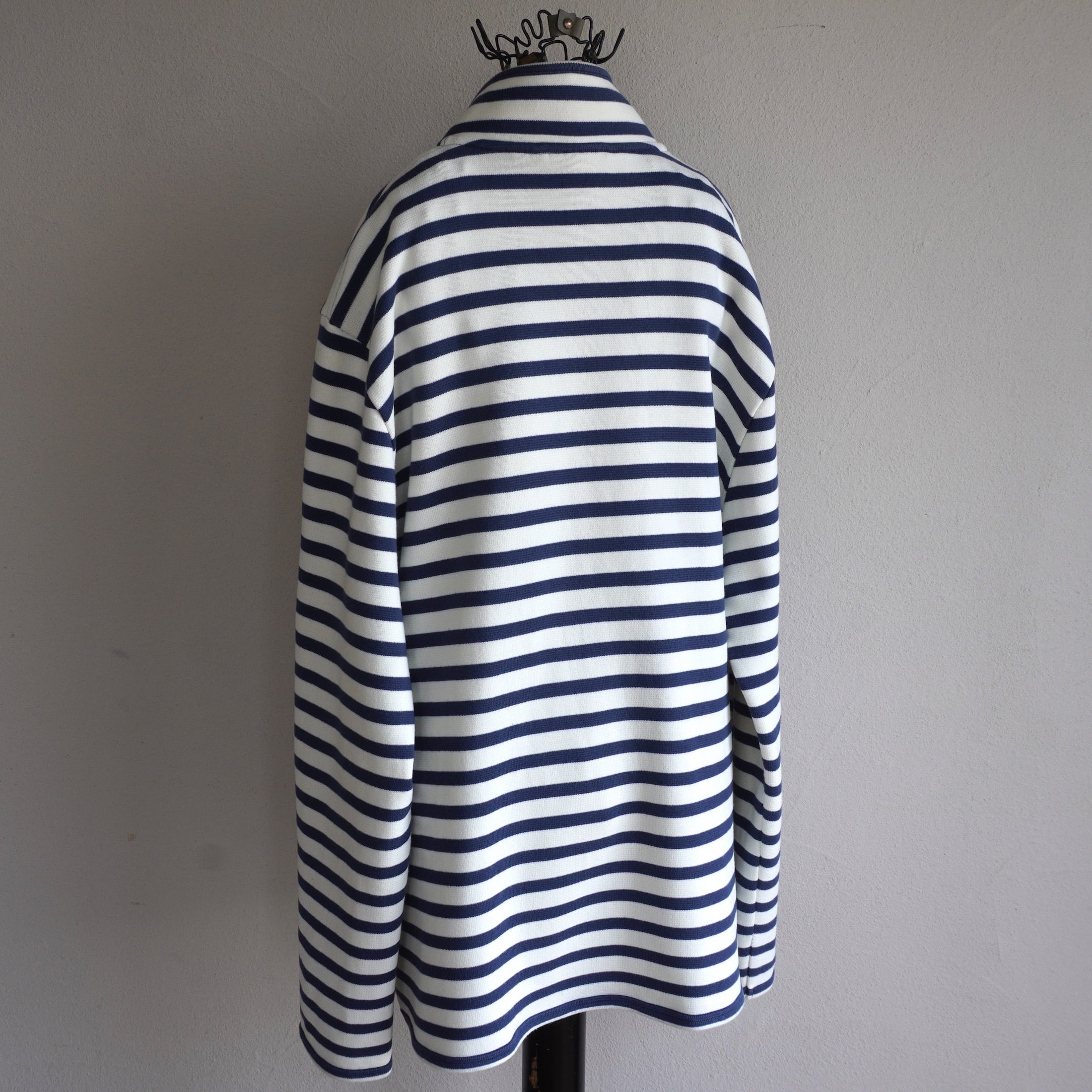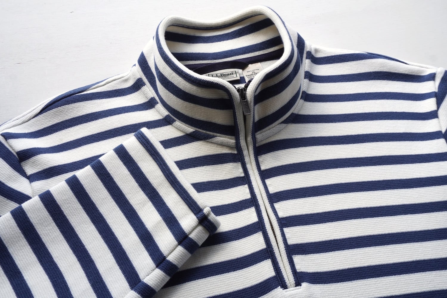 ホワイト×ネイビー定番ボーダー柄の、ハーフジップコットンプルオーバー。