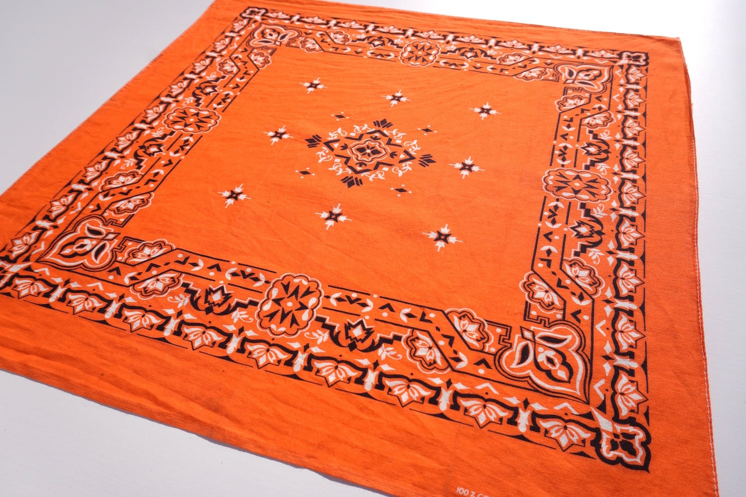 1970's USA製 [WAMCRAFT] アトミック/ボタニカル/トライバル柄 ヴィンテージバンダナ オレンジ 実寸(52.5cm×52cm) RN14193 100% COTTON | MAGNOLIA WEBSTORE