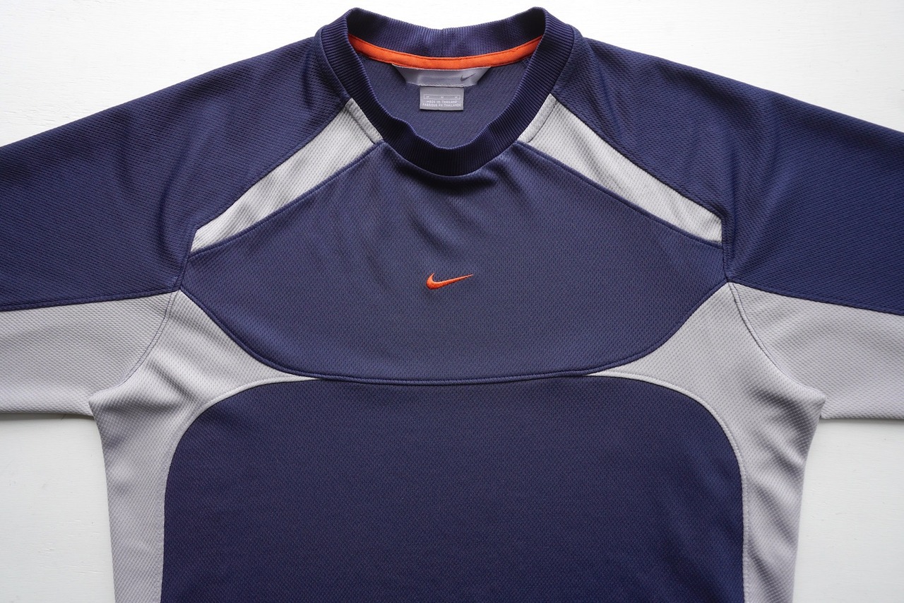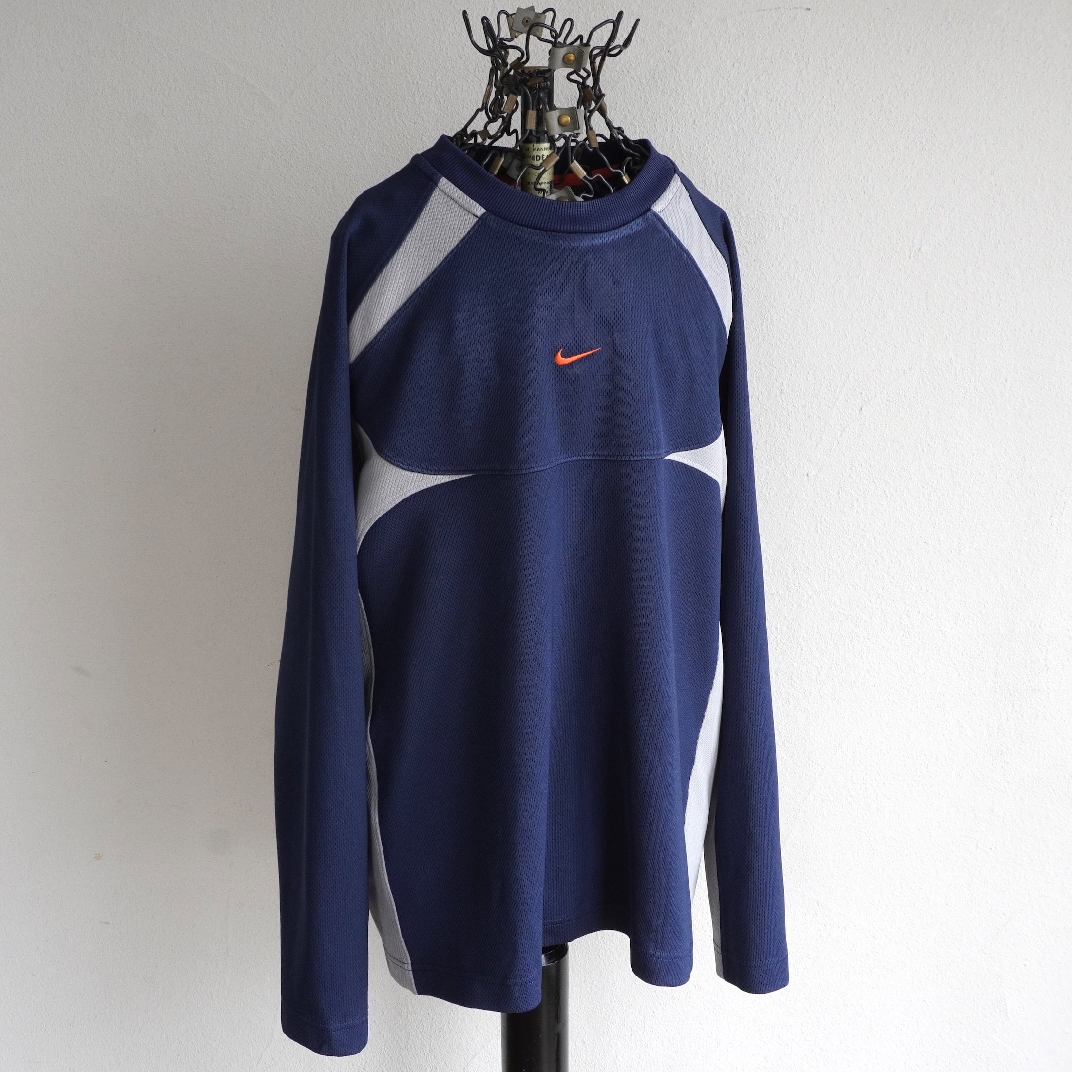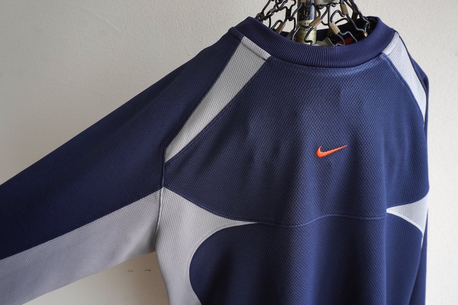2000's [NIKE] センターSWOOSH L/S マルチレイヤーハニカムメッシュジャージー ネイビー×グレー 表記(men's M) ナイキ Y2K ヴィンテージ | MAGNOLIA WEBSTORE