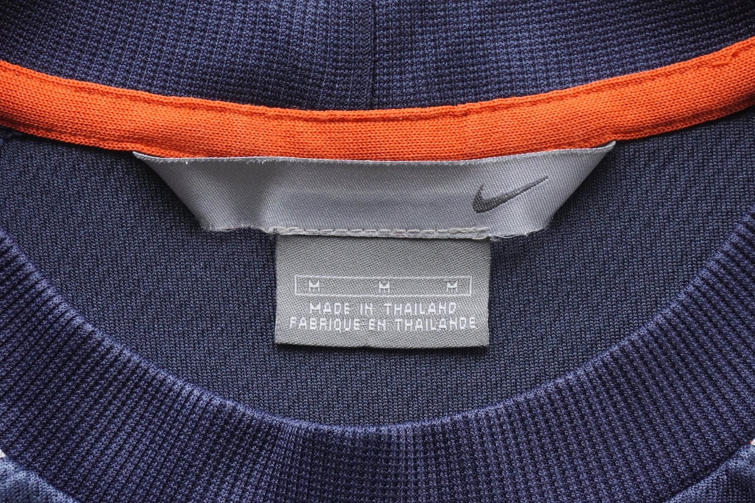 Y2Kな切り替えカラーブロックデザインにオレンジのセンターSWOOSHが映える、L/Sメッシュジャージー。