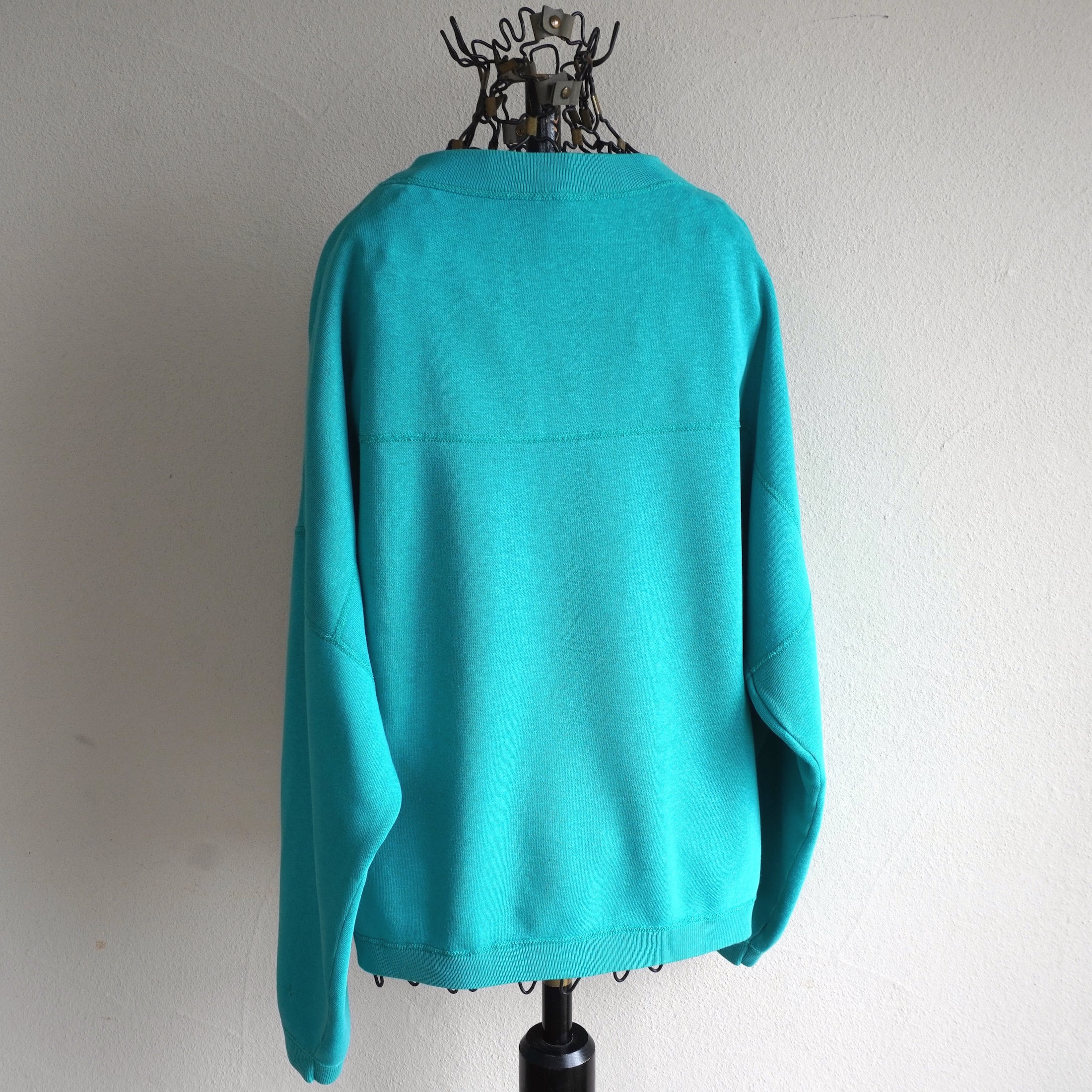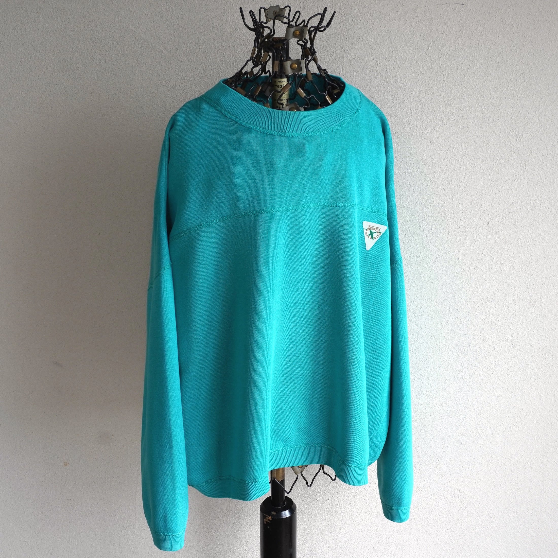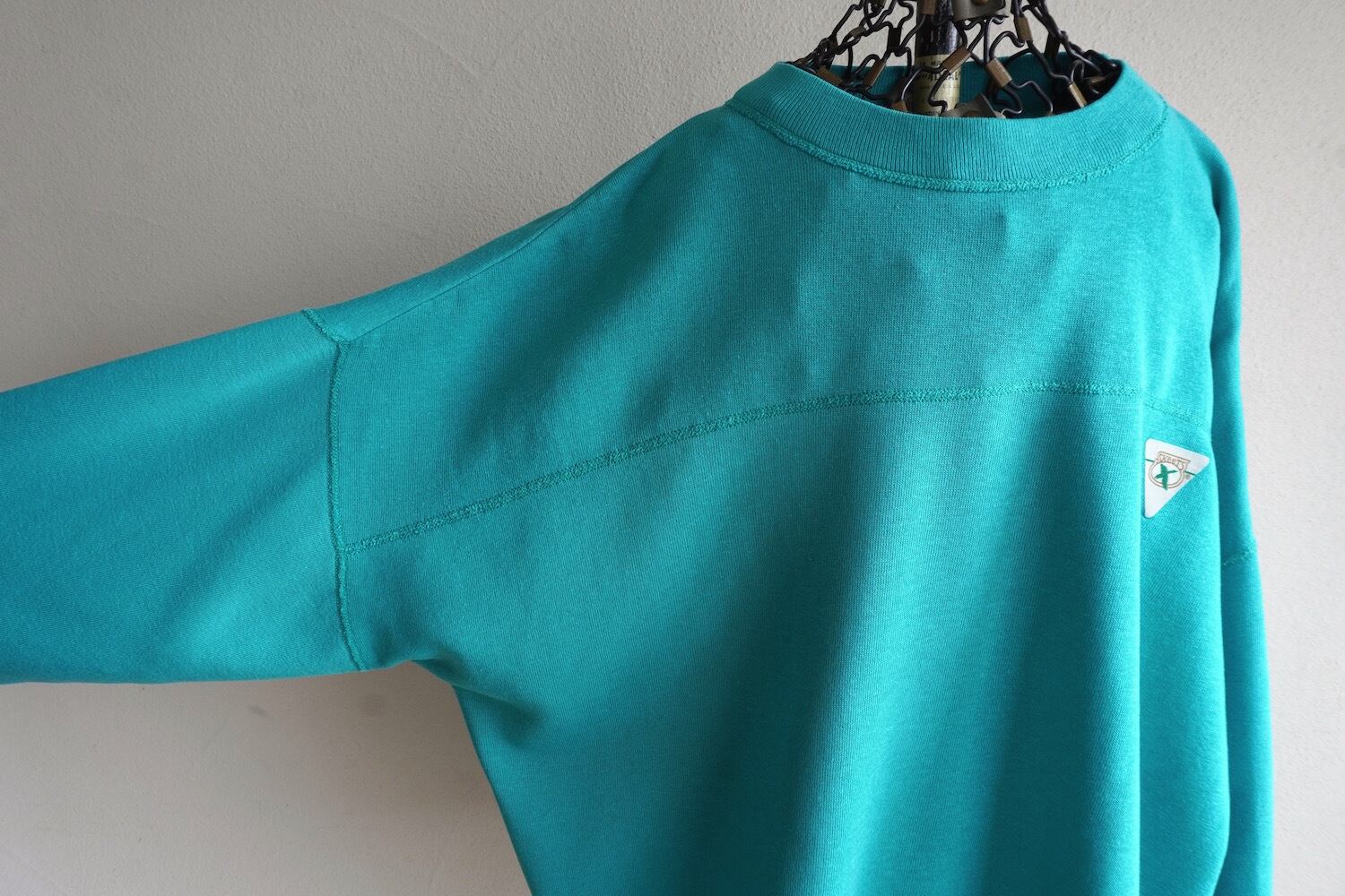 1980's [SKeeTS] 三角ロゴ ワイド&ショート クルーネックスウェット ターコイズ 実寸(women's L程度) ヴィンテージ