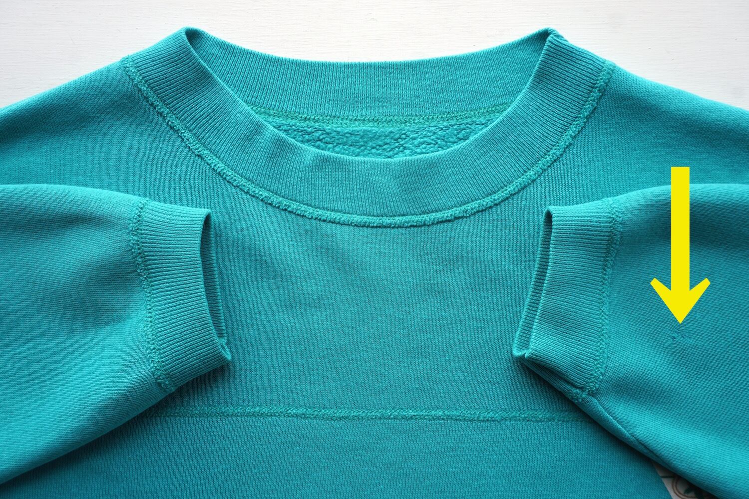 【コンディション】USED感・画像では分からない程度の薄シミ・左袖にピンホールリペア・背面裾リブ内側に小ダメージはありますが、その他特に目立つダメージはありません。