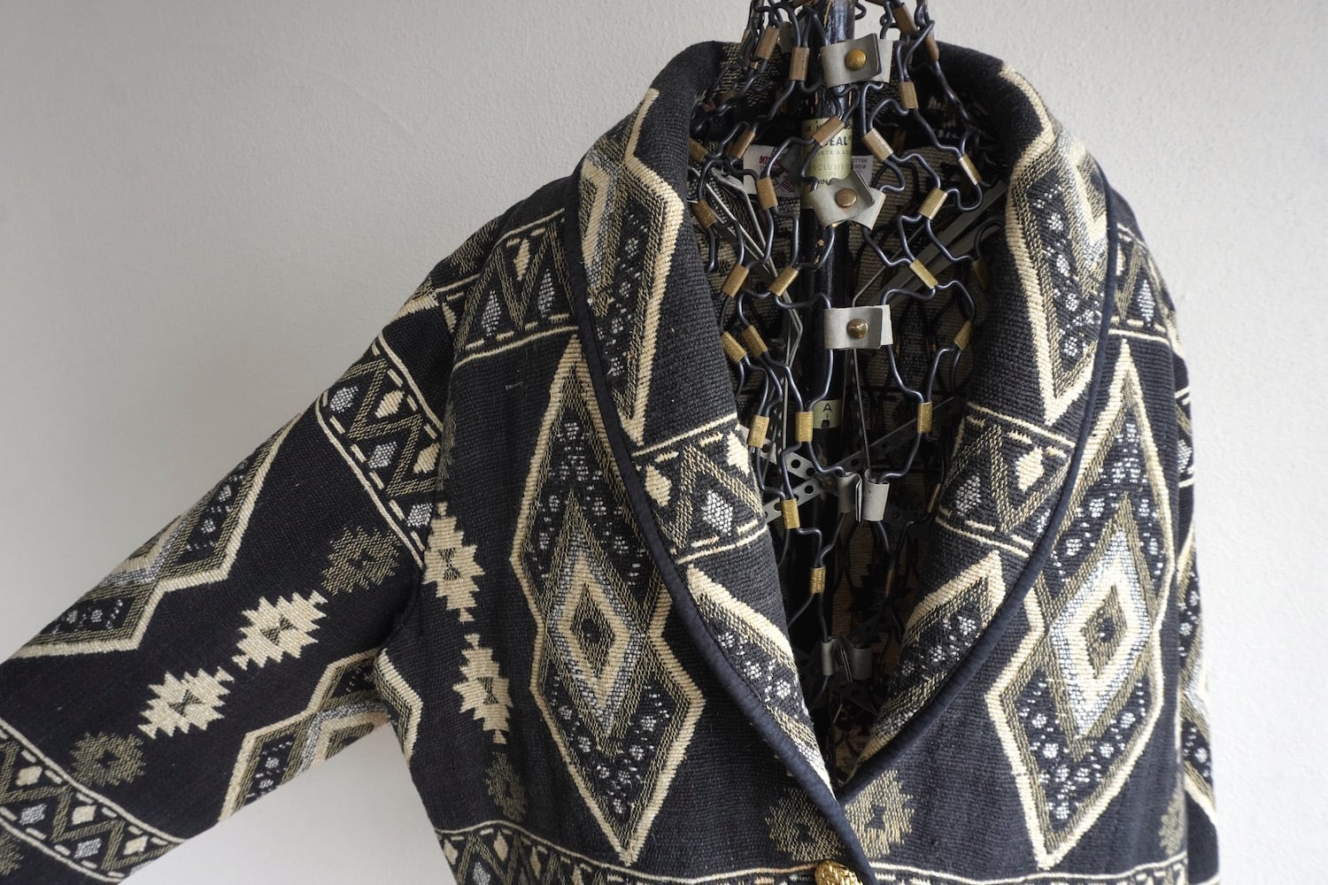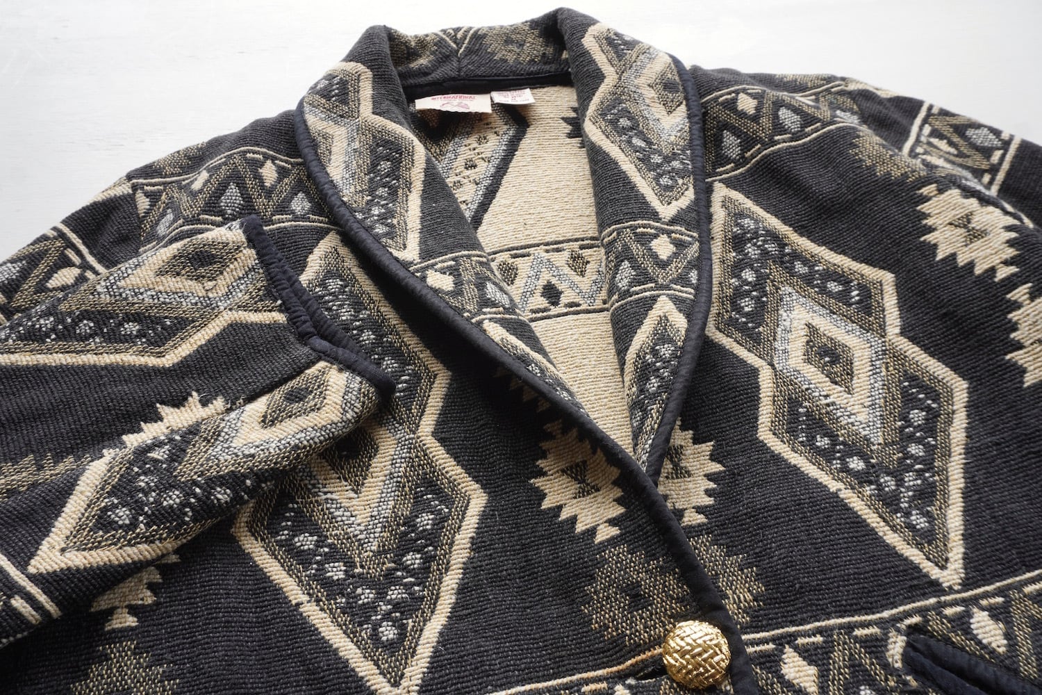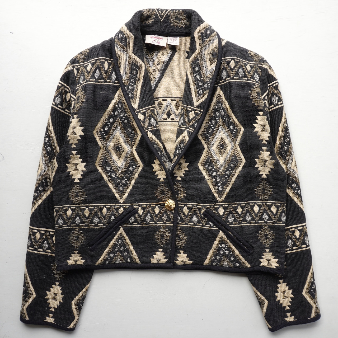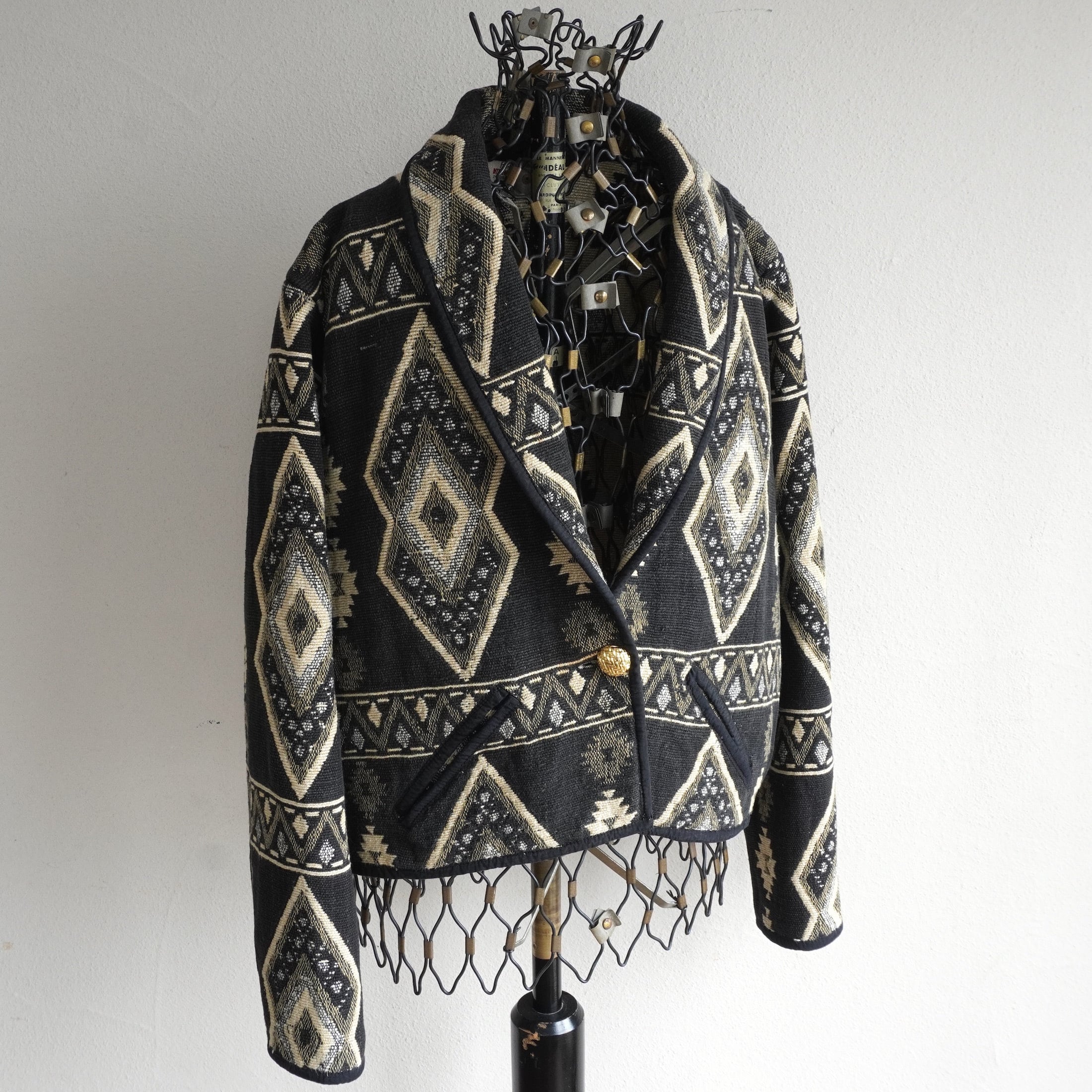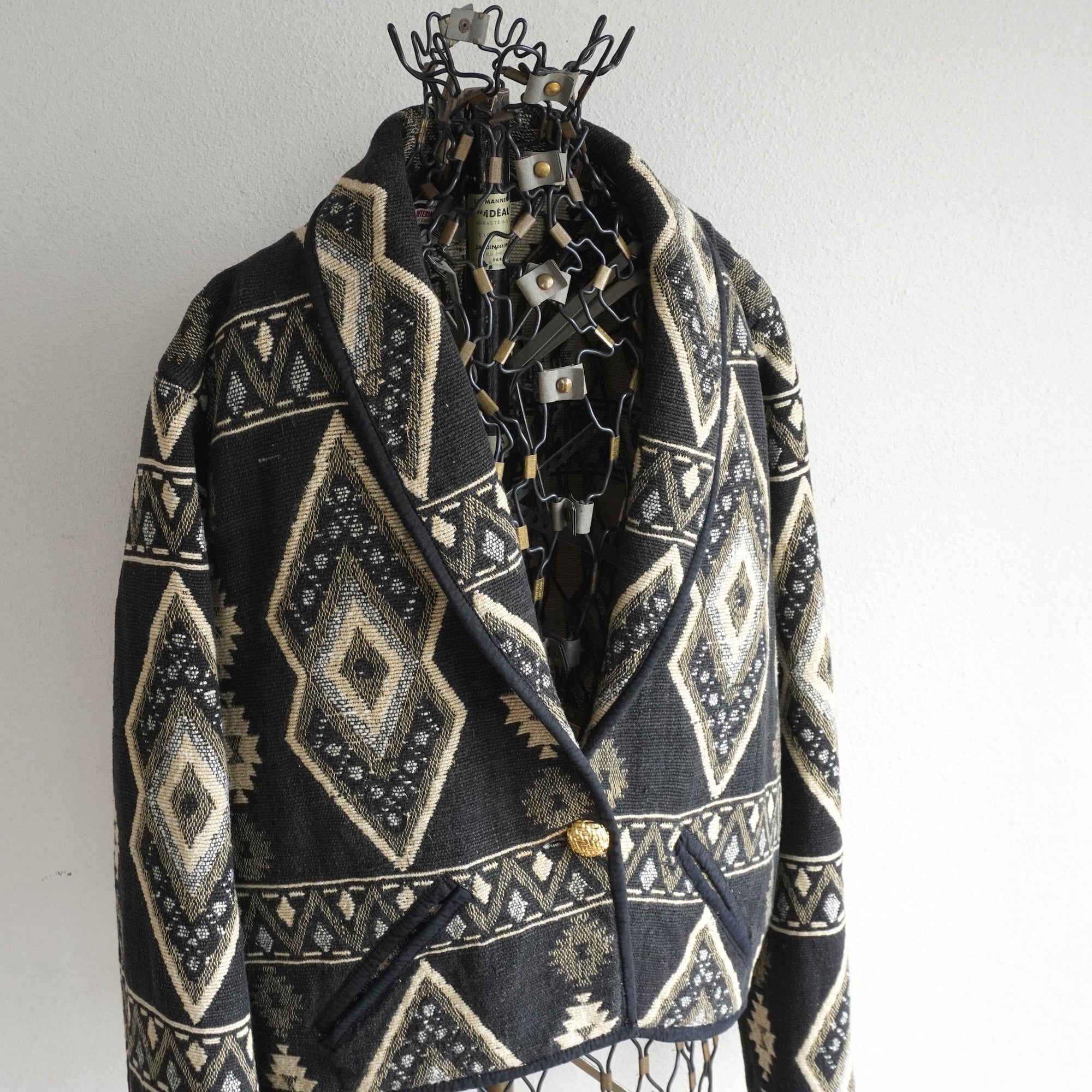 ブラックにパターンの良いネイティブ柄が印象的な、タペストリー(ゴブラン)ジャケット。