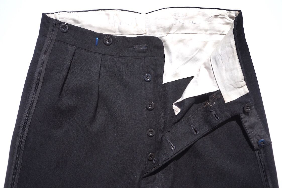 1940’s [GREGORY & ROCHE] 2タック ラインスラックス ブラック×ブラック 実寸(W31位) ロンドン モード