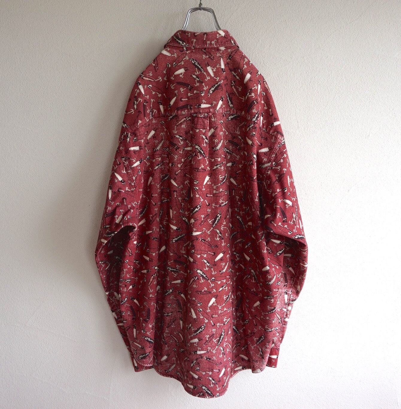 1990’s [Columbia] ルアー柄 コットンフランネルボタンダウンシャツ 表記(XL) コロンビア