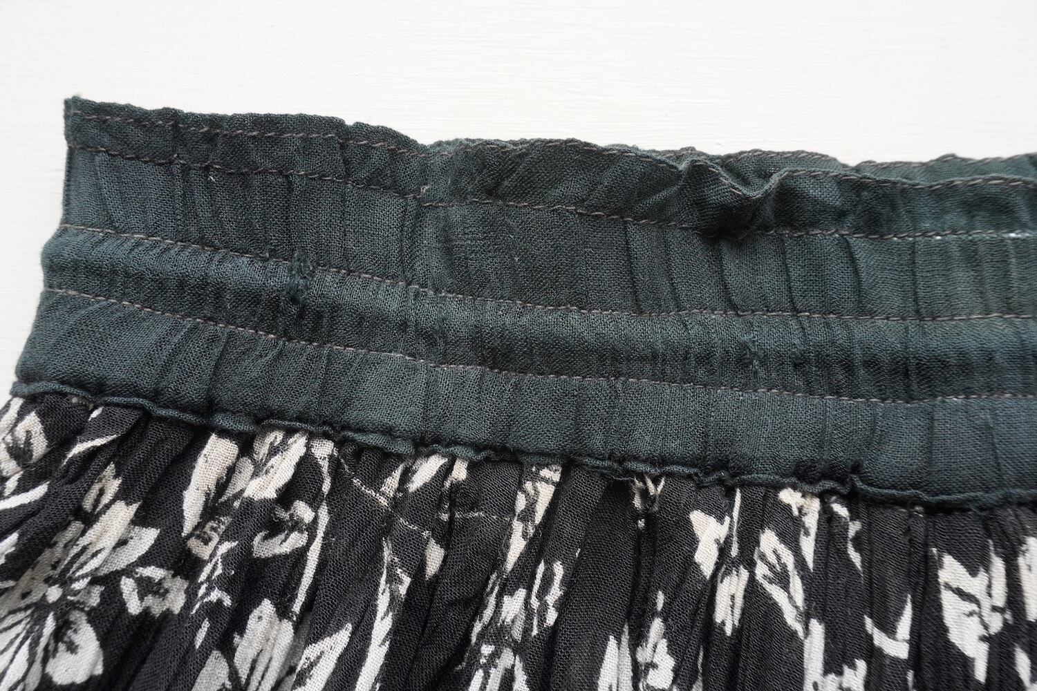 モノトーンのボタニカル/フローラル柄がエスニック且つシックな、フレアロングスカート。