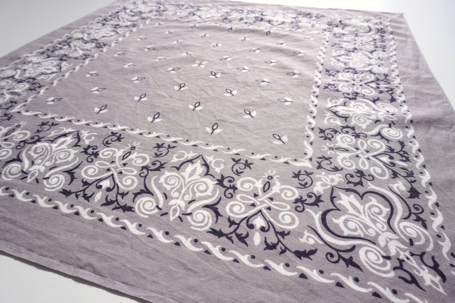 1970's USA製 [WAMCRAFT] アラベスクボタニカル柄 ヴィンテージバンダナ グレー 実寸(55cm×53cm) RN14193 COLOR FAST 100% COTTON