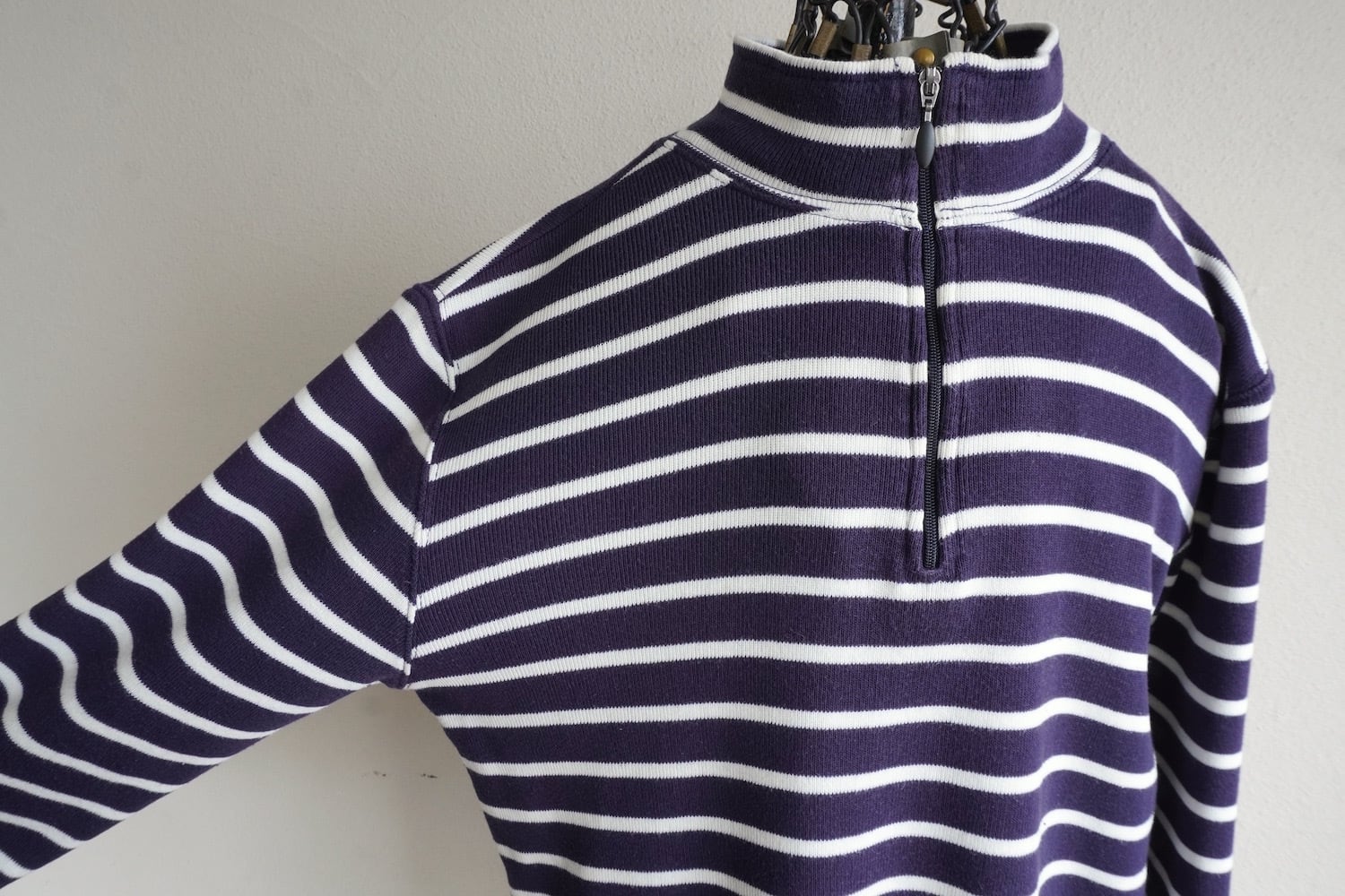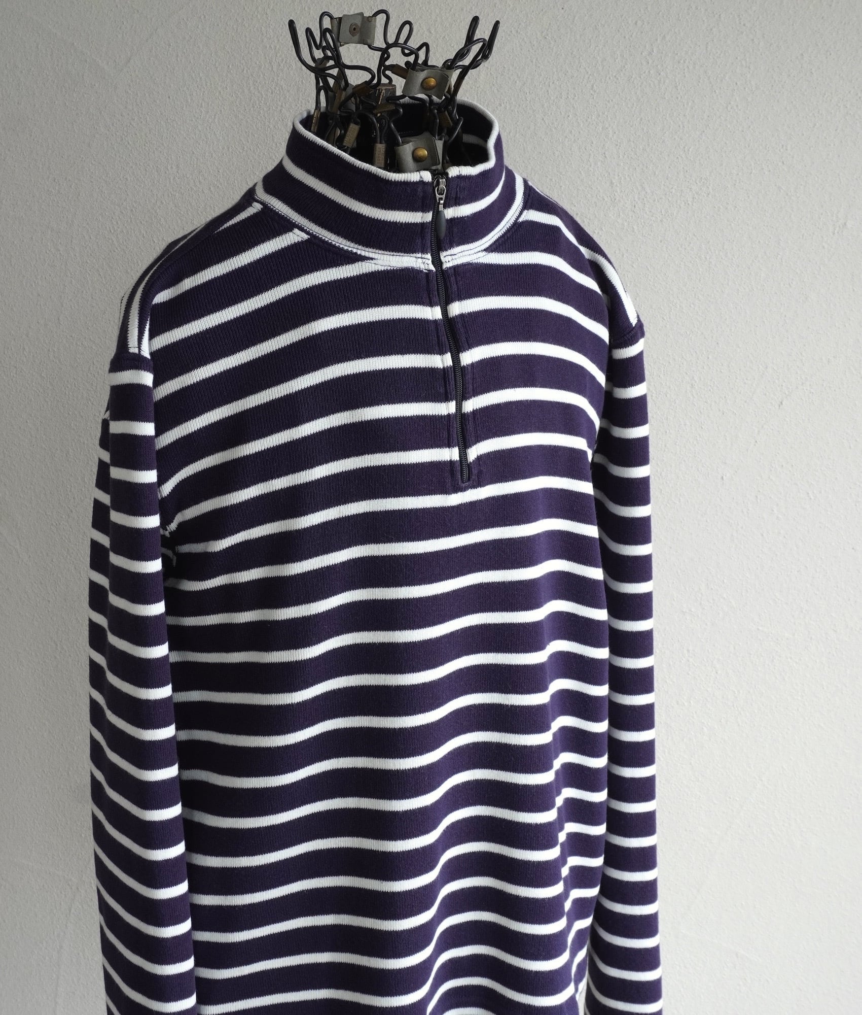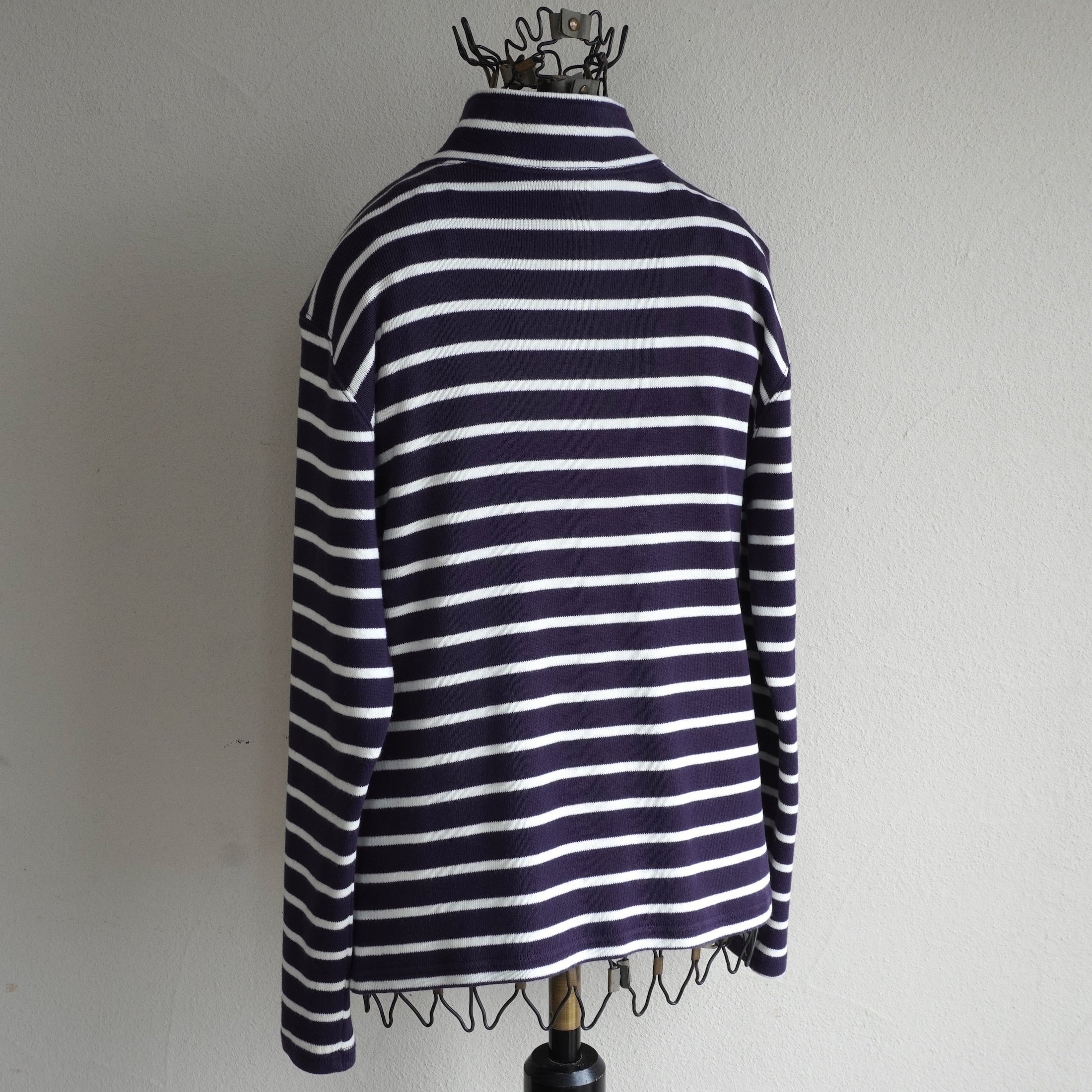 ネイビー×ホワイト定番ボーダー柄の、ハーフジップコットンプルオーバー。