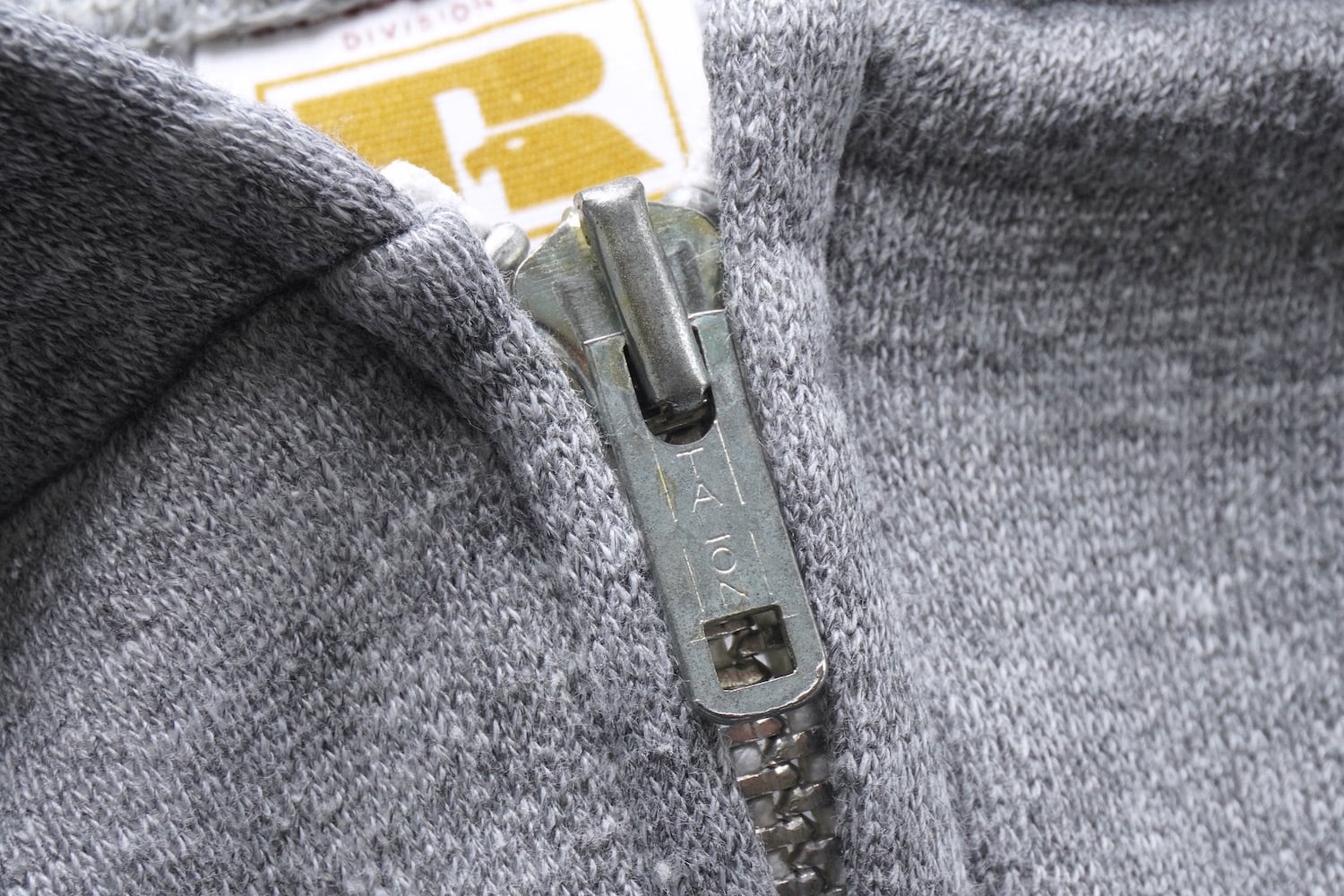 1970's USA製 [RUSSELL] "TALON"アルミジッパー フルジップ ブランクスウェットパーカ ヘザーグレー 表記(men's XL) 金タグ ラッセル ヴィンテージ