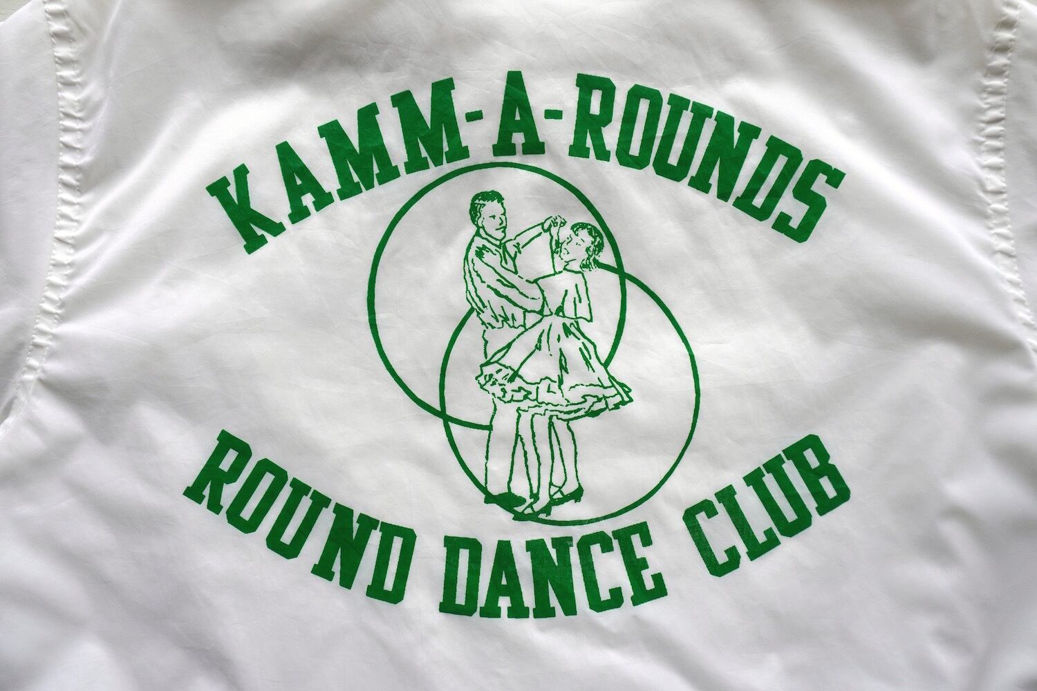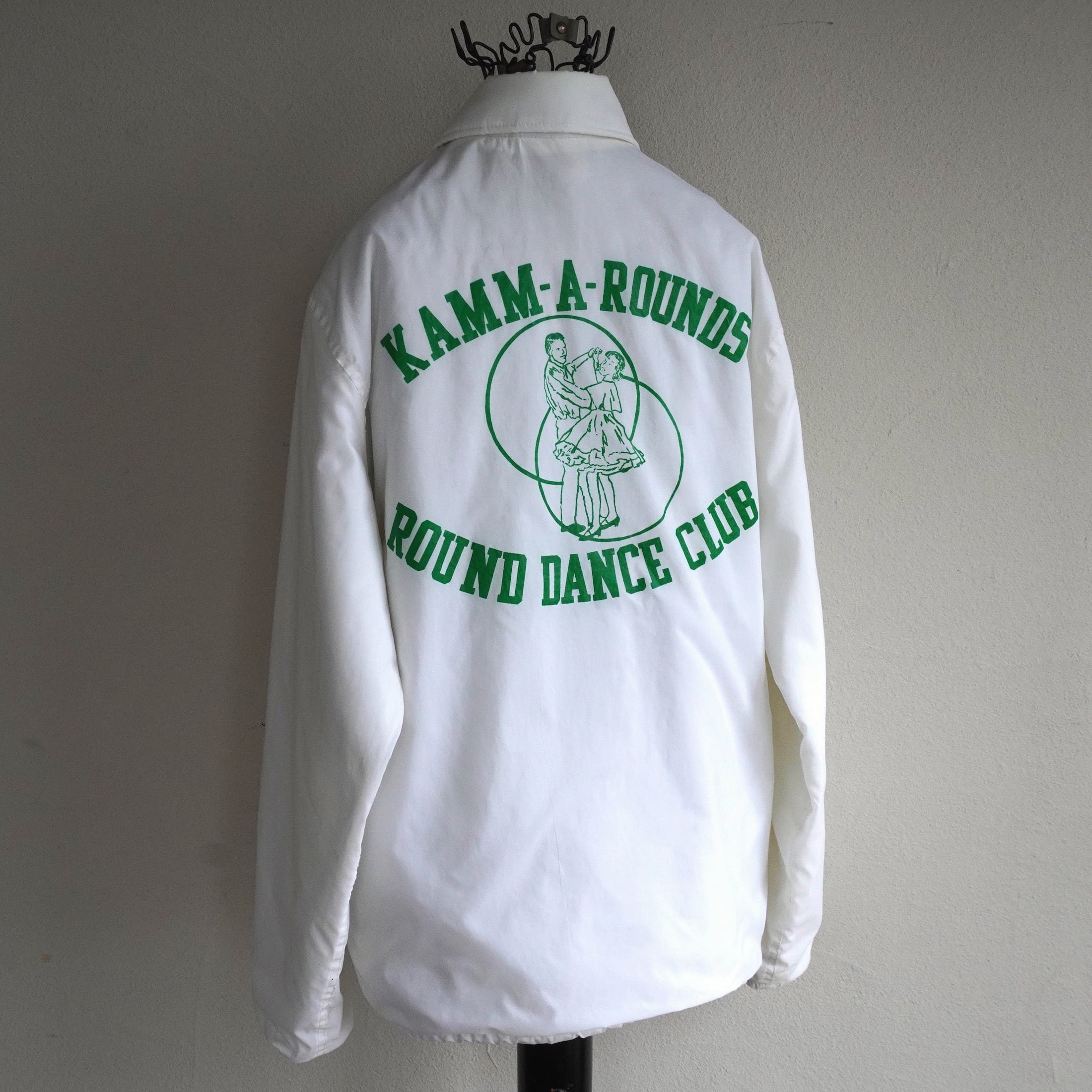 1970's USA製 [Pla-Jac] "KAMM-A-ROUNDS ROUND DANCE CLUB" ナイロンコーチジャケット ホワイト 表記(men's S) チェーンステッチ ヴィンテージ
