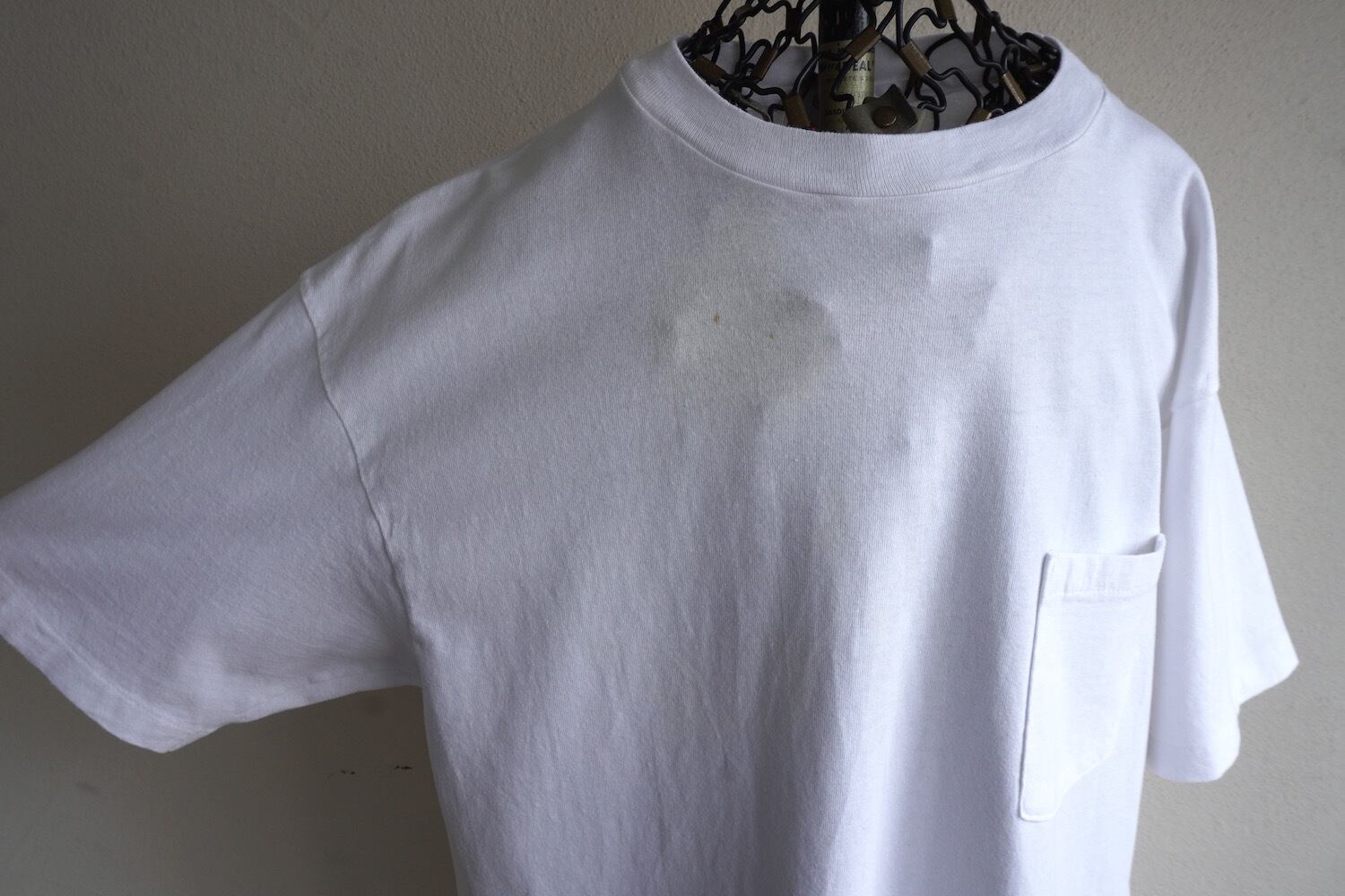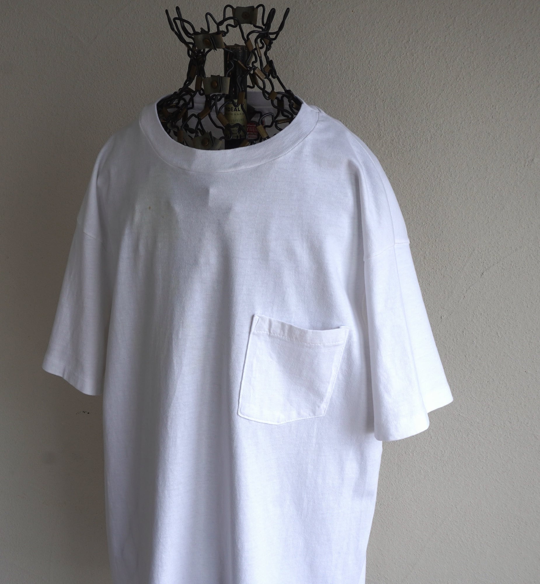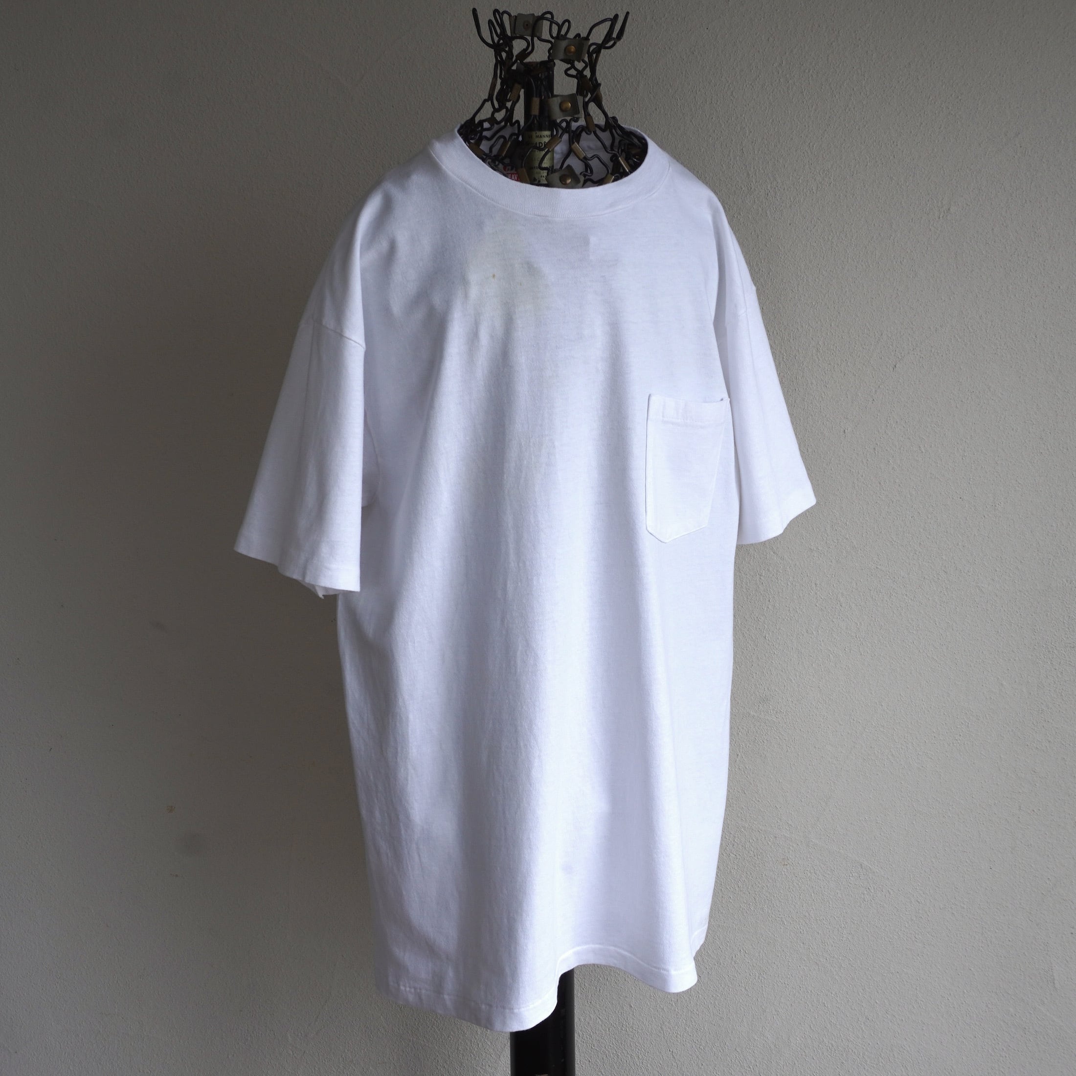 1980's USA製 [Hanes] "HEAVYWEIGHT" 100%コットン S/S ポケットTシャツ 無地 ホワイト 表記(men's L) シングルステッチ ヘインズ ヴィンテージ