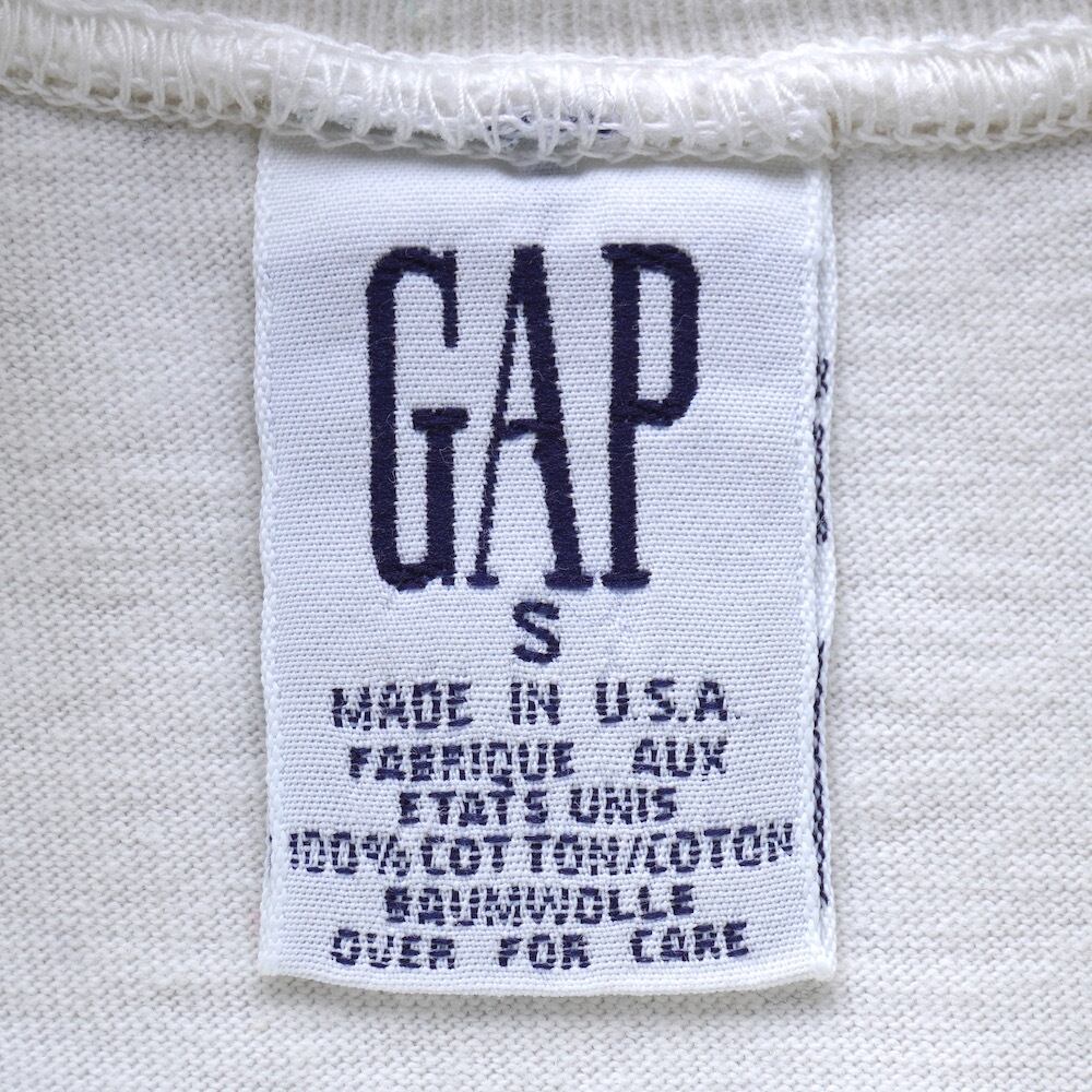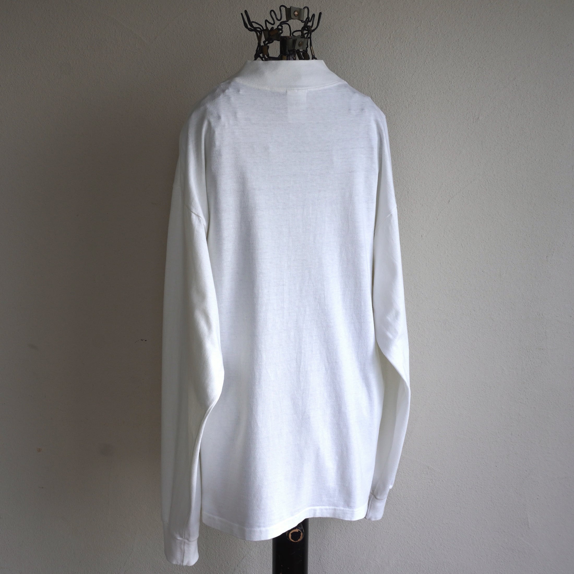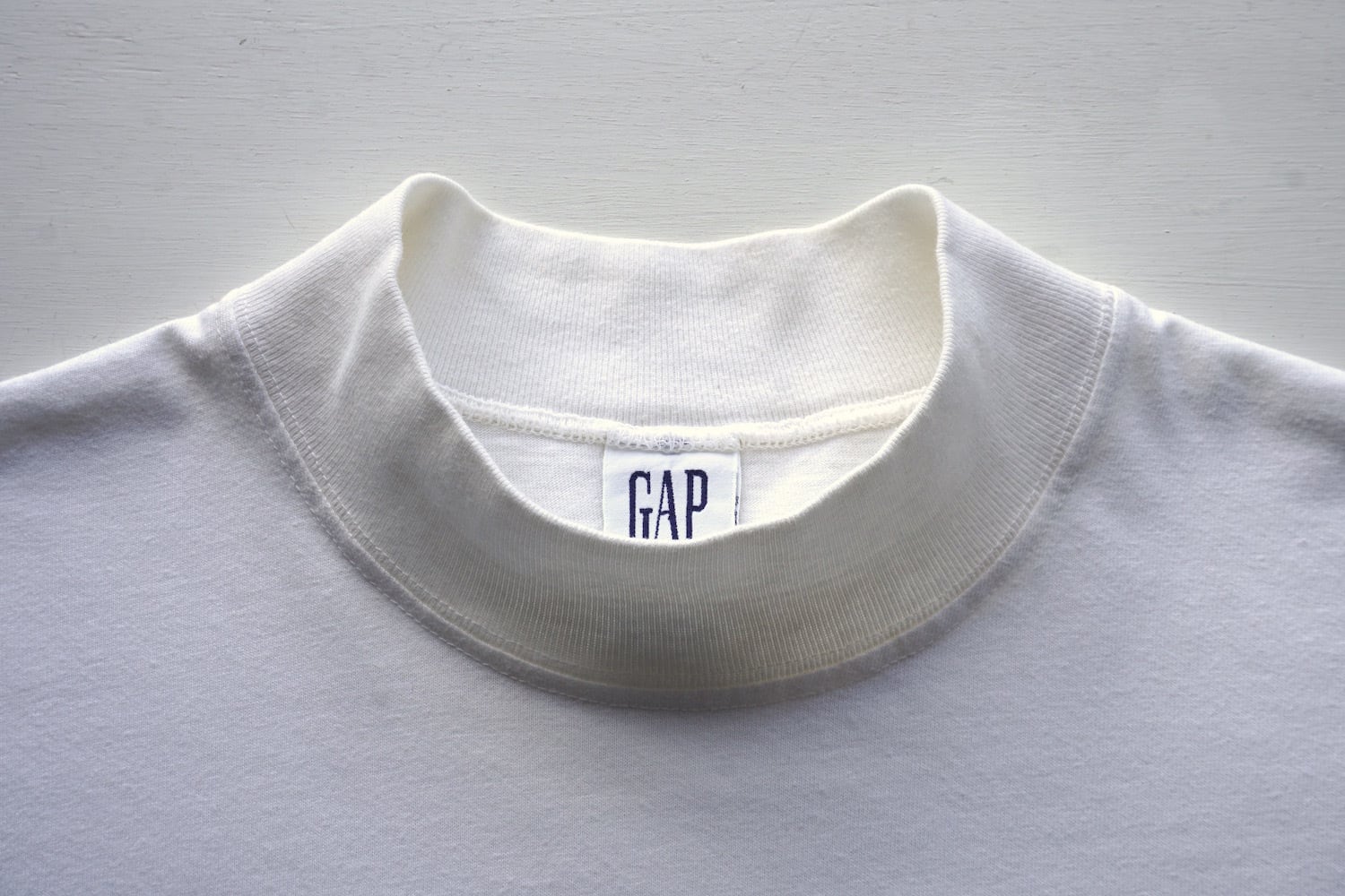 1990's [GAP] 白刺繍タグ モックネック ロングスリーブ Tシャツ 無地 オフホワイト 表記(men's S) シングルステッチ ヘヴィーウェイト ロンT オールドギャップ ヴィンテージ