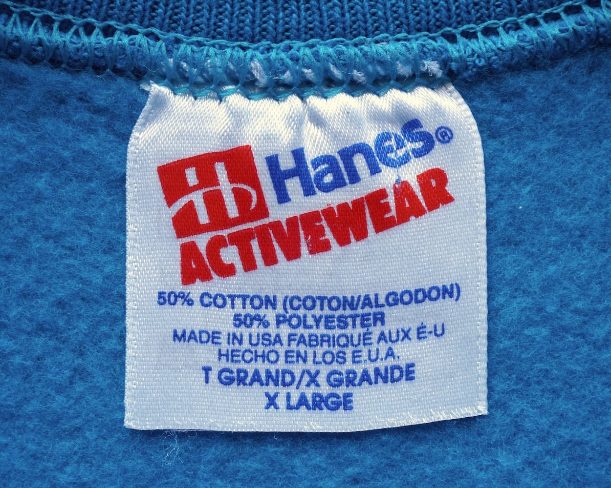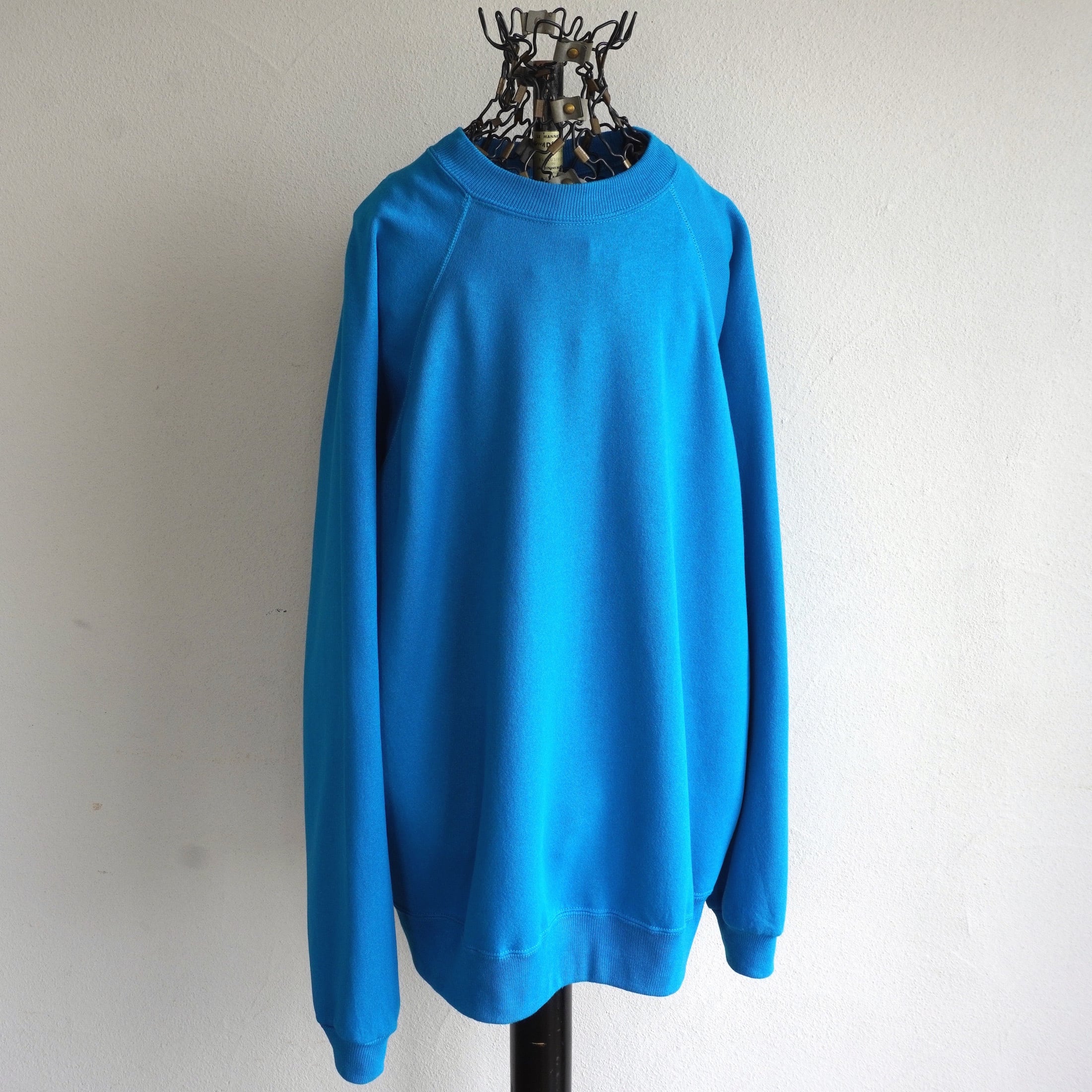 1990's USA製 [Hanes] "ACTIVEWEAR" ブランク(無地)スウェット ラグランスリーブ ターコイズブルー 表記(men's XL) ヘインズ ヴィンテージ