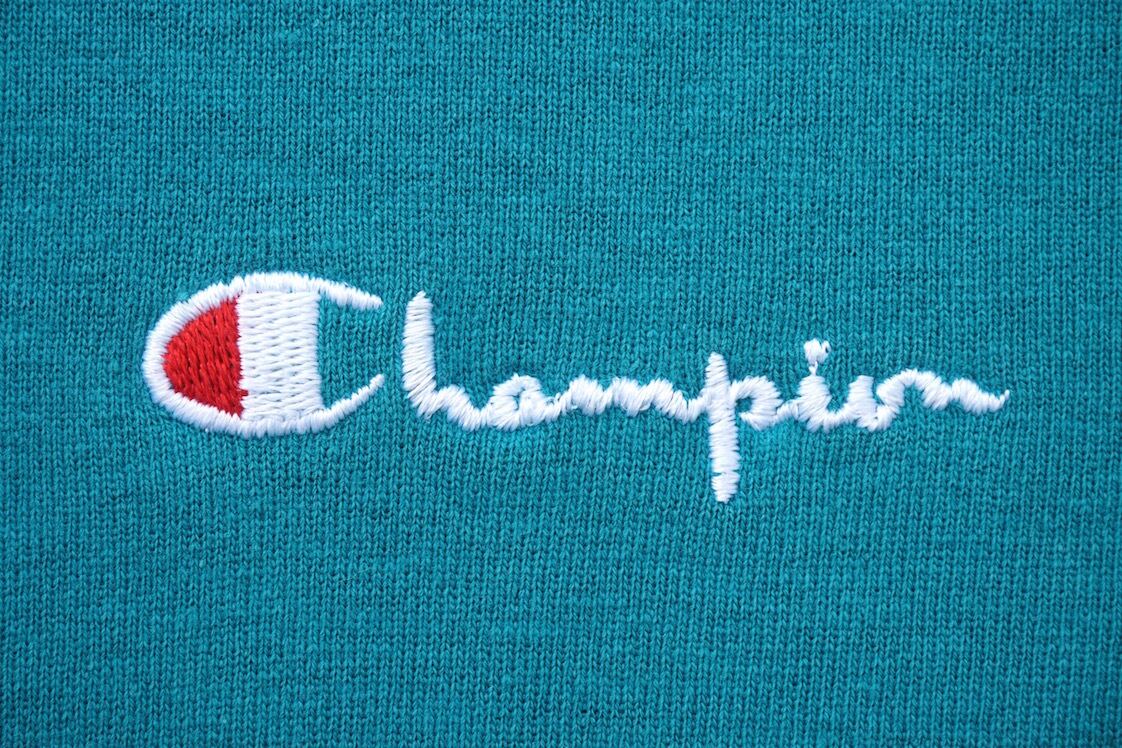 1990’s USA製 [Champion] 前Vガゼット ワンポイント刺繍 スウェットパーカ ターコイズ 表記(LARGE) チャンピオン