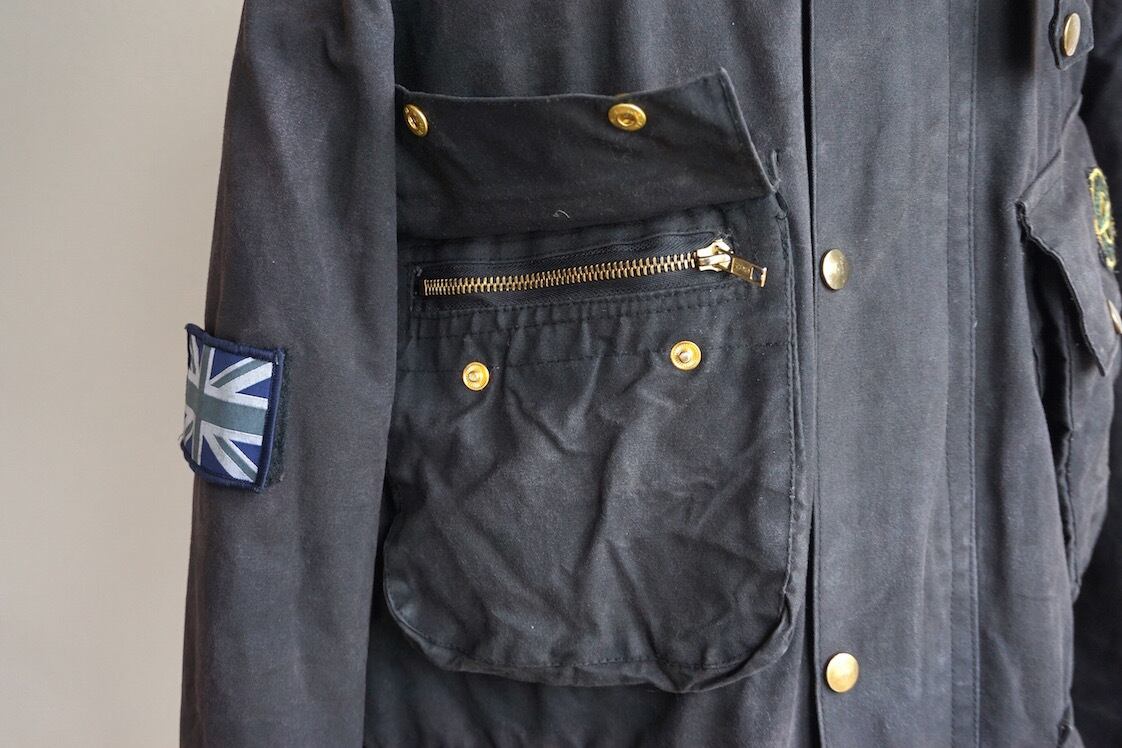 ENGLAND製 [Campbell Cooper] インターナショナル型 オイルドモーターサイクルジャケット ブラック 表記(S) ユニオンジャック STONE ISLAND