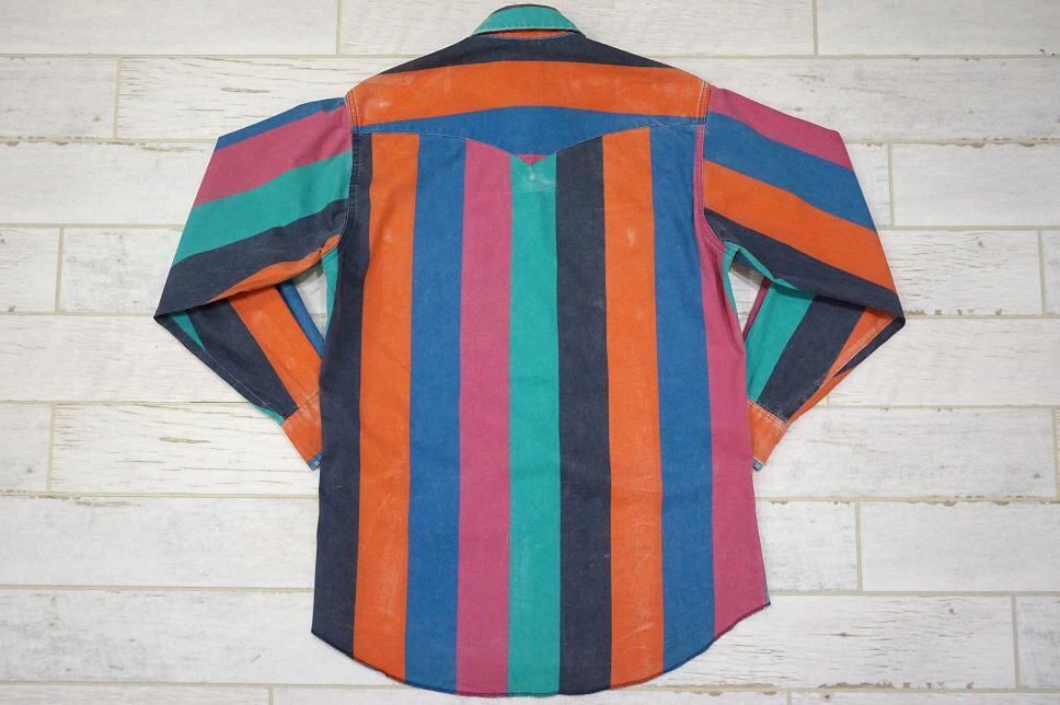 1980’s Wrangler マルチカラーストライプ ウエスタンシャツ 表記(M) ラングラー