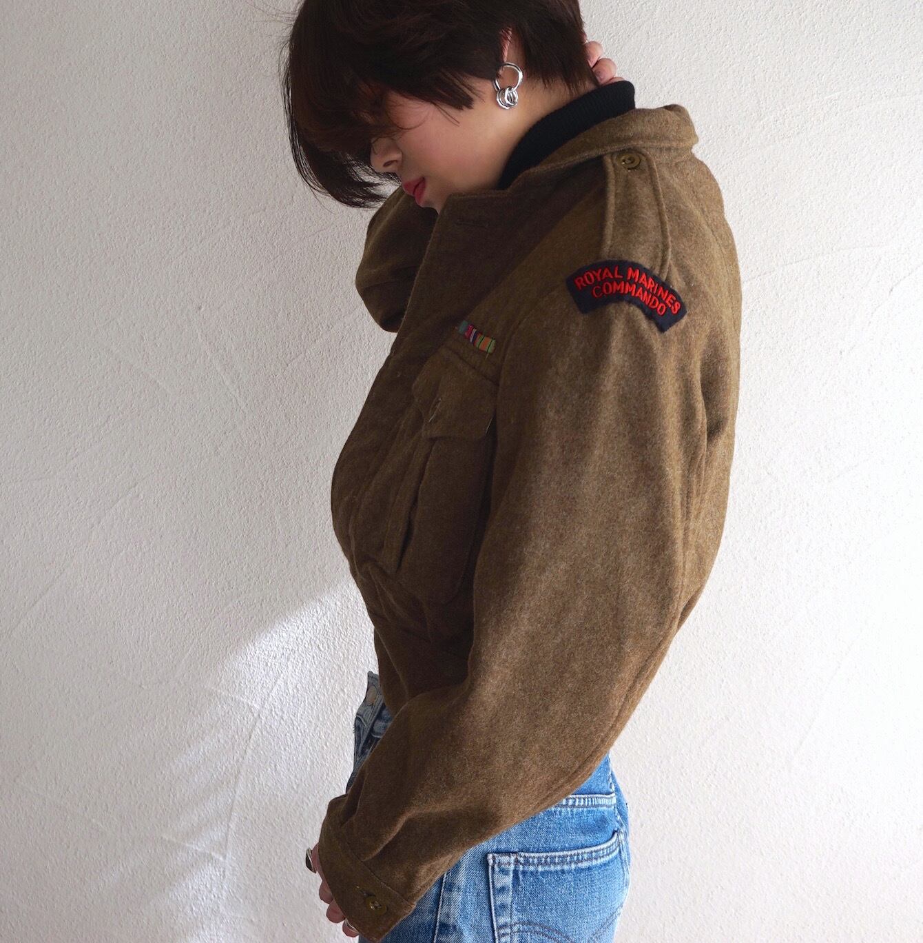 1950’s [ROYAL MARINES] ウールバトルドレス カーキブラウン 実寸(メンズXS/ウィメンズM位) イギリス海兵隊 アイクジャケット