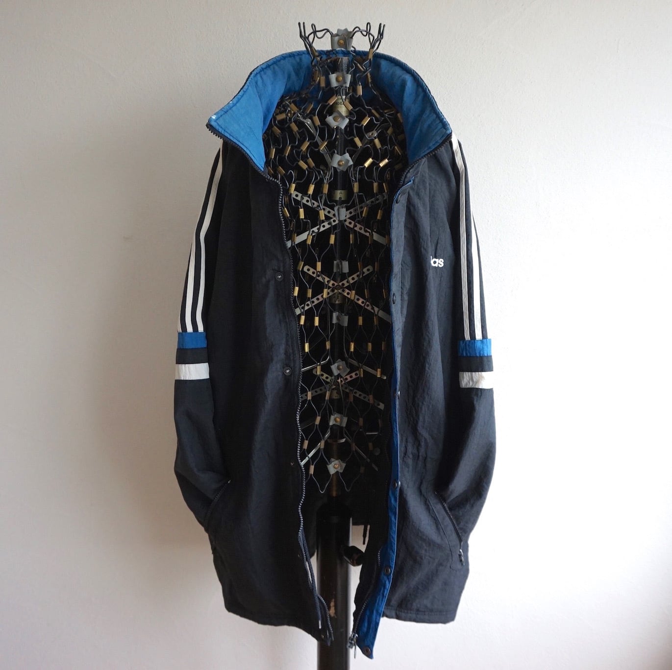 90’sらしい3ストライプスデザインの中綿入りトラック(ベンチ)コート。
