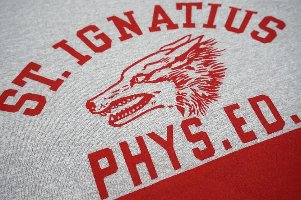 1980’s DEADSTOCK!! SCREEN STARS オオカミ4段プリントTシャツ 霜降りグレー×赤 表記(M) スクリーンスターズ デッドストック