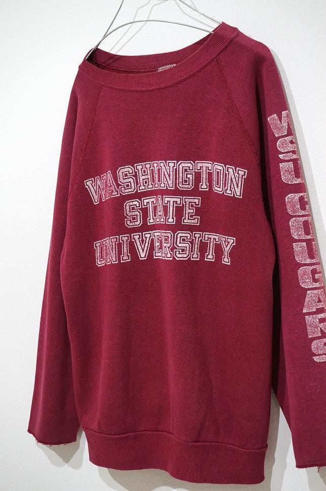 1970’s DISCUS ワシントン大学 ラグランカレッジスウェット 袖リブカットオフ エンジ 表記(S)