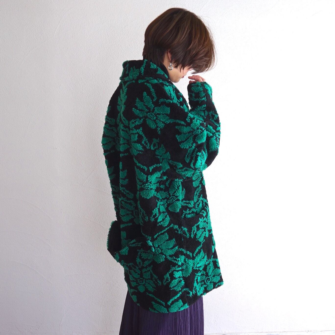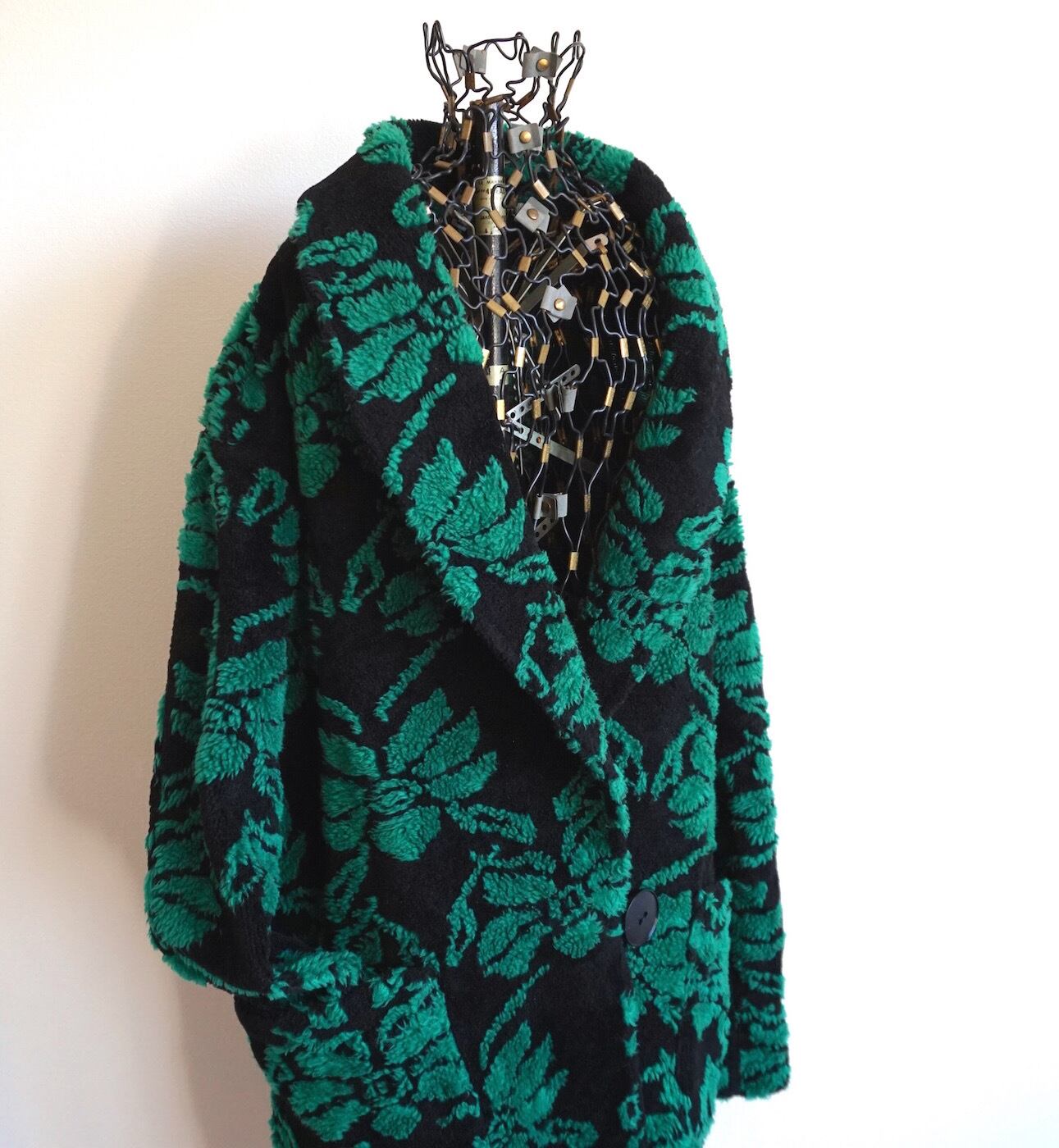 1980’s ビッグシルエット 総柄ボアジャケット ブラック×グリーン