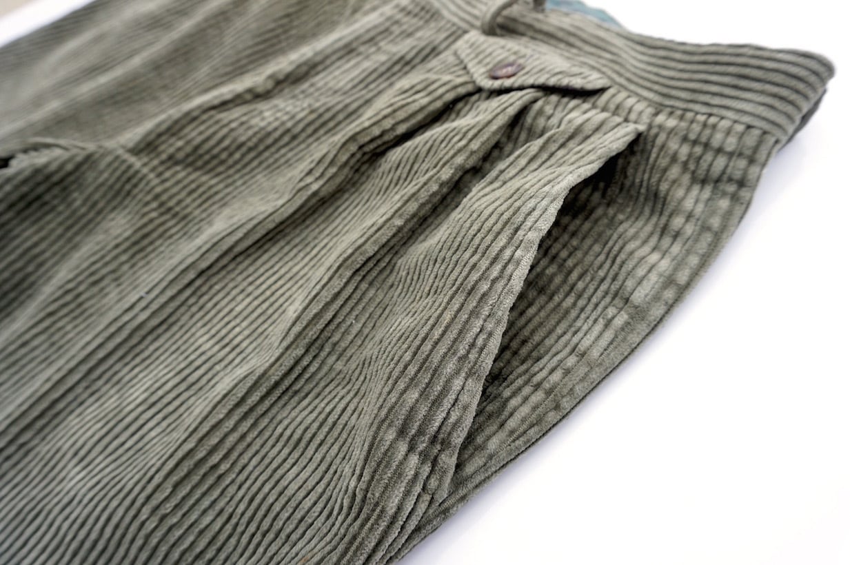 1980’s [NORTON & WILSON] 太畝・2タック コーデュロイスラックス オリーブカーキ 実寸(W34位)