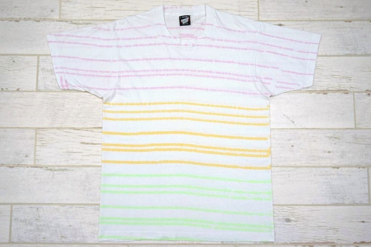 1990’s SCREEN STARS パステルボーダーTシャツ 白 表記(L) スクリーンスターズ