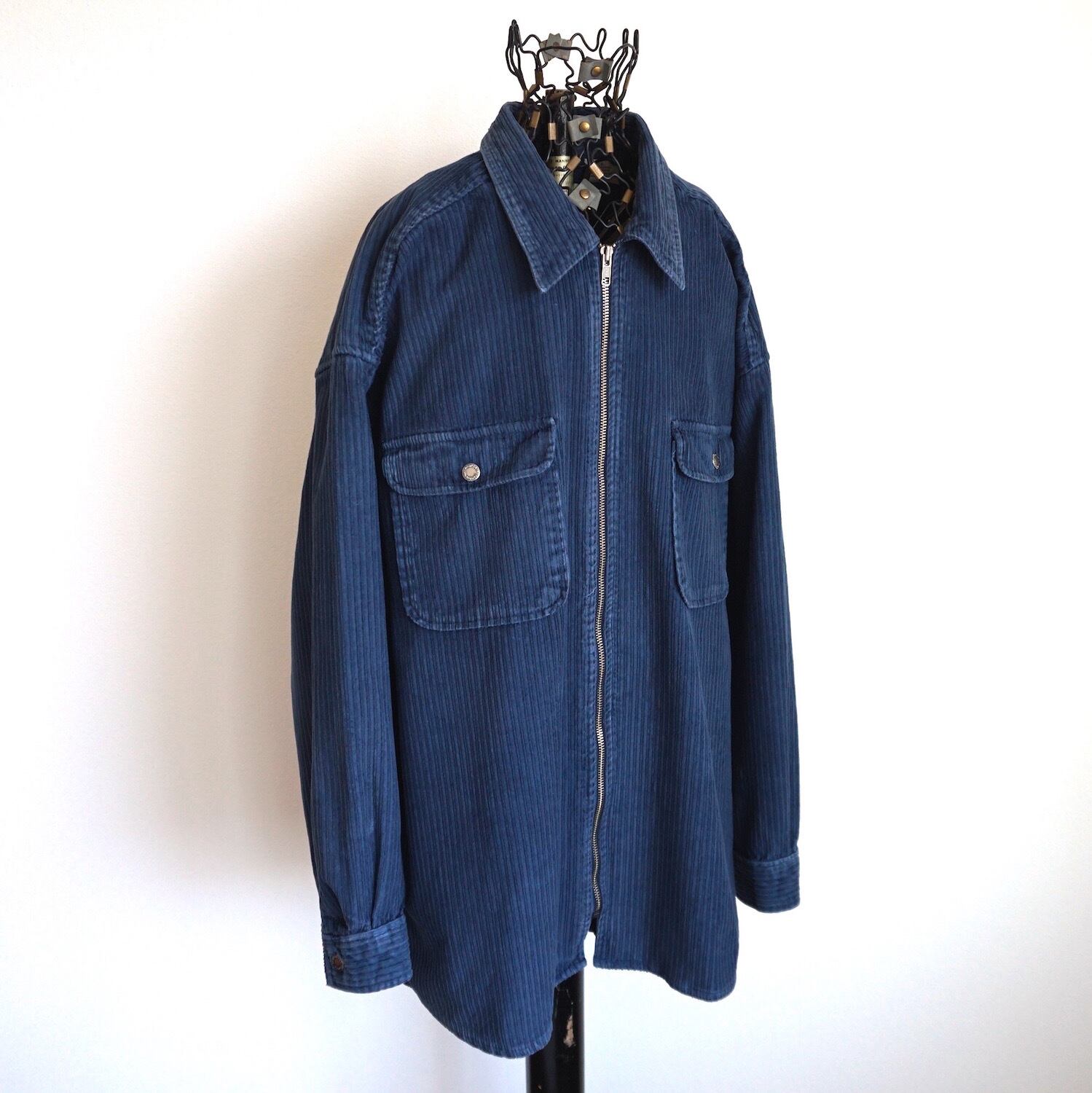 1990’s [PROPERTY] ジップアップタイプ 太畝 コーデュロイシャツ ネイビー 表記(L)
