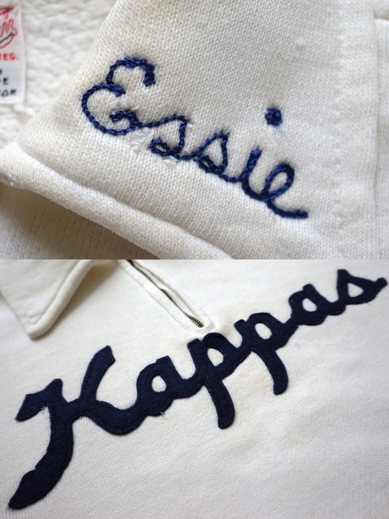 1950’s Southern 襟付きハーフジップスウェット チェーンステッチ&フェルトワッペン 白×紺 表記(36)