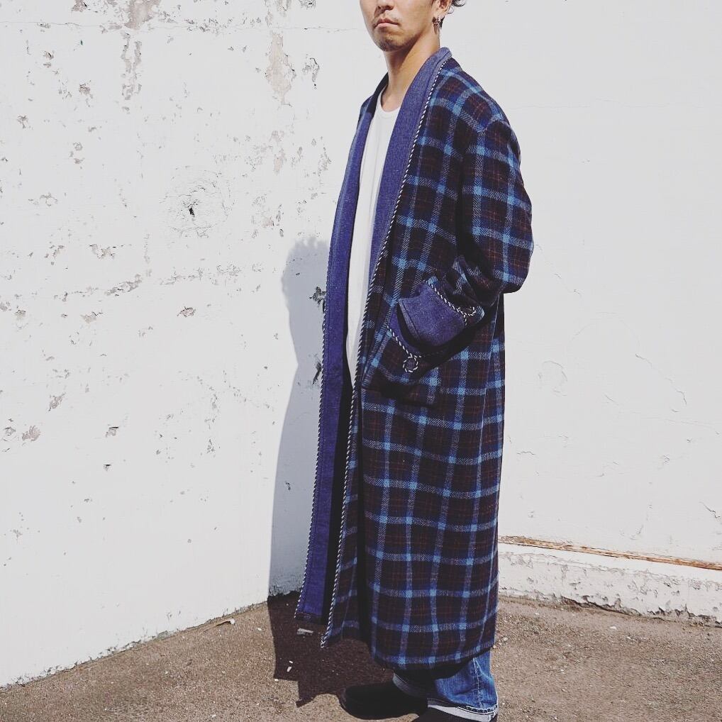 1950〜60’s Norwellan ウールガウン 青 実寸(M〜L位) ローブ