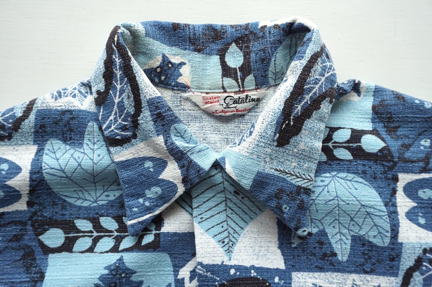 1960’s [Catalina] リーフ柄 アロハシャツ シェルボタン ブルー 表記(MEDIUM) ハワイアン
