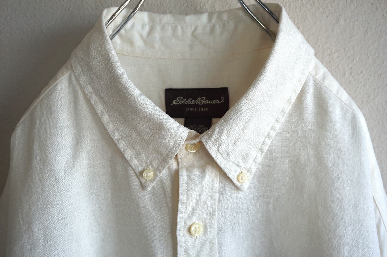 [Eddie Bauer] 100%リネン S/Sボタンダウンシャツ アイボリーホワイト 表記(XXL) エディーバウアー