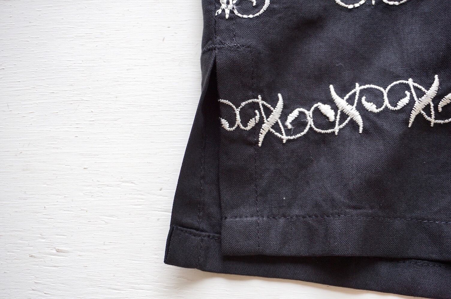 [fusione] キューバシャツ調刺繍 オープンカラー&ボックス型 S/S シルクシャツ ブラック×ホワイト 表記(M)