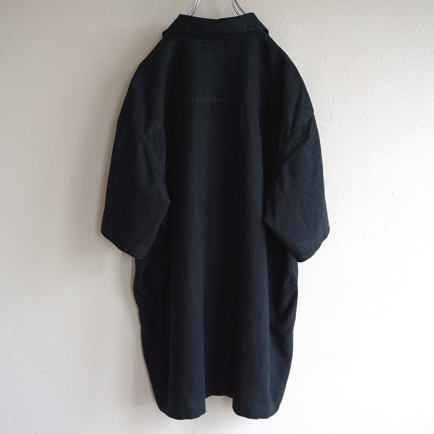 [CHERESKIN] オープンカラー&ボックス型 リネン×レーヨン S/S シャツ ブラック×オフホワイト 表記(XL)