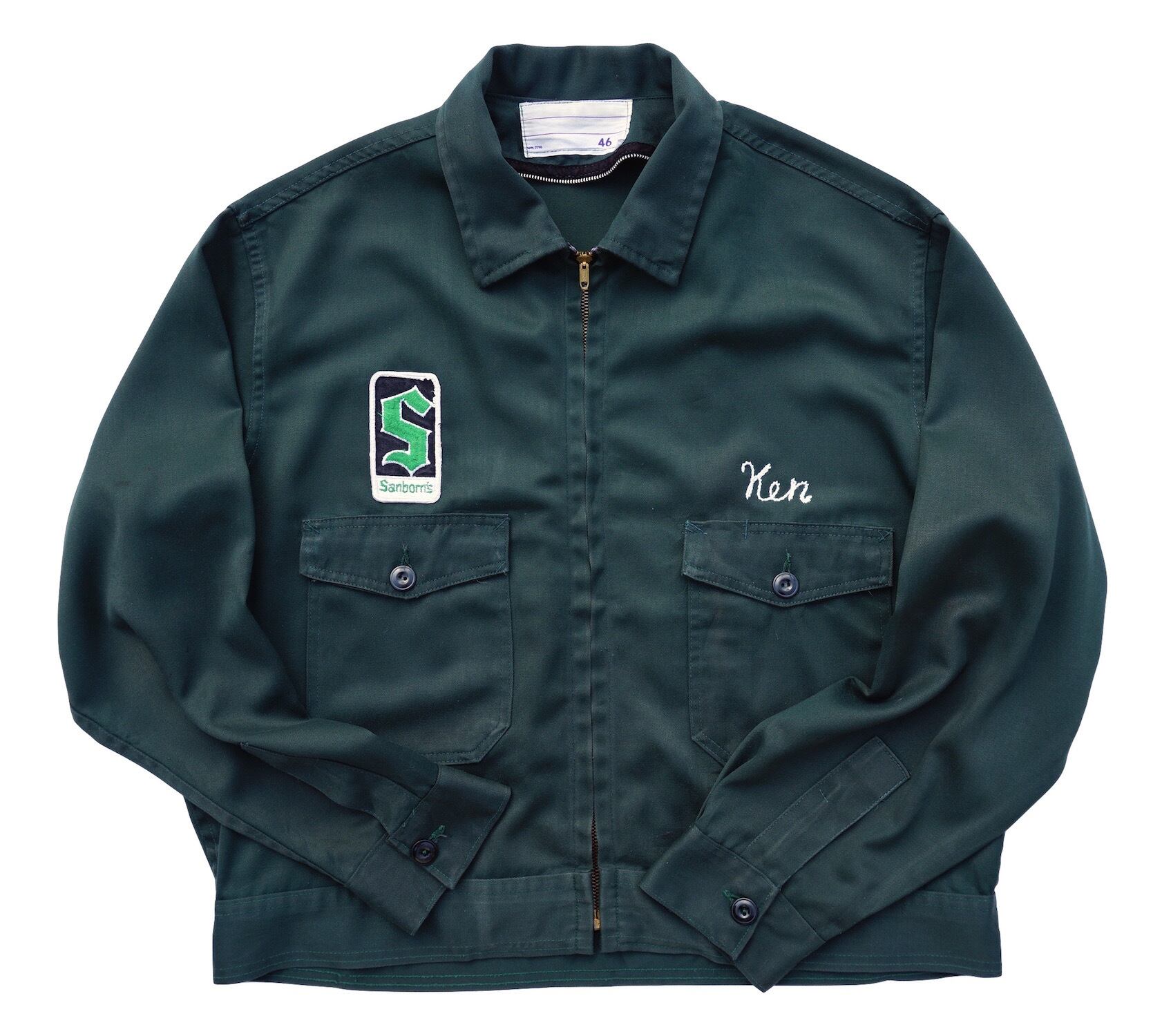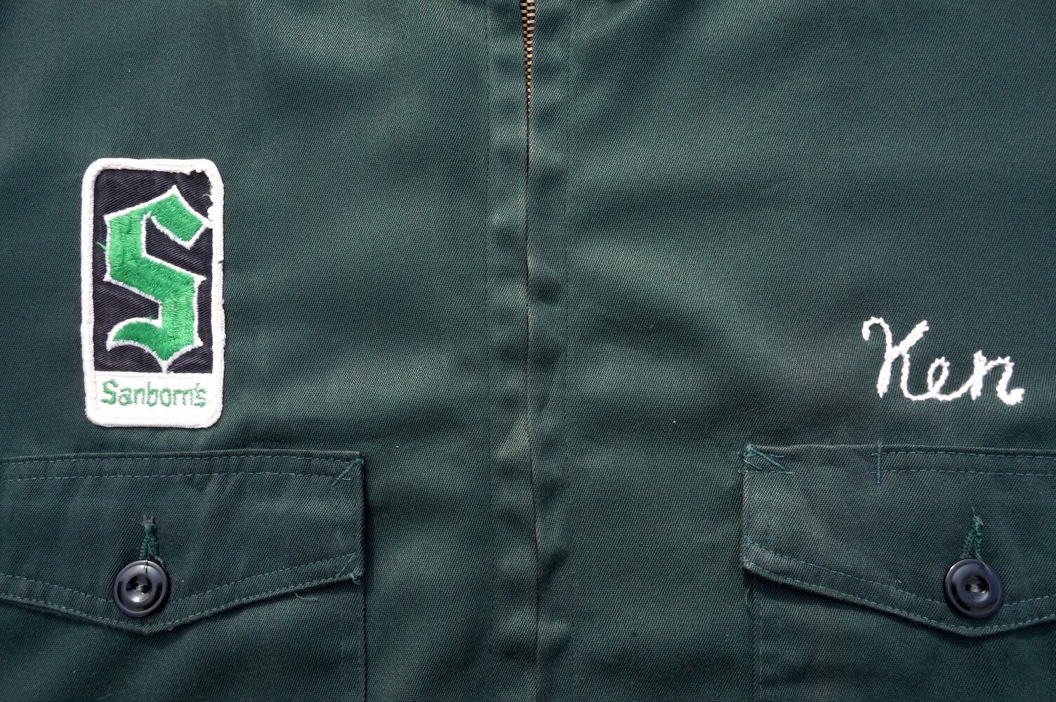 1950’s Vintageワッペン&チェーンステッチ ショート丈ワークジャケット ダークグリーン 表記(46) CONMAR
