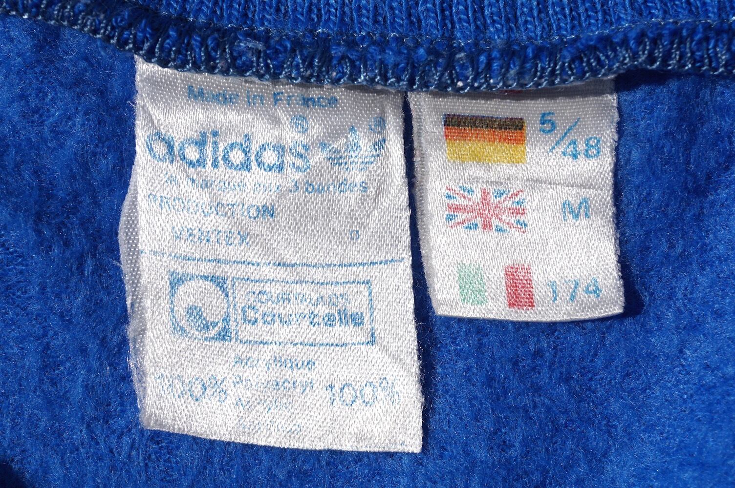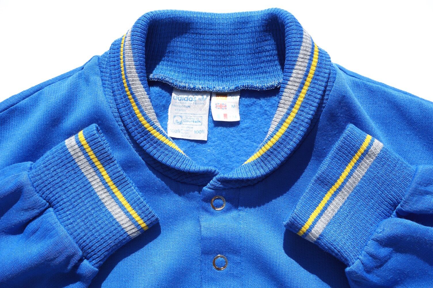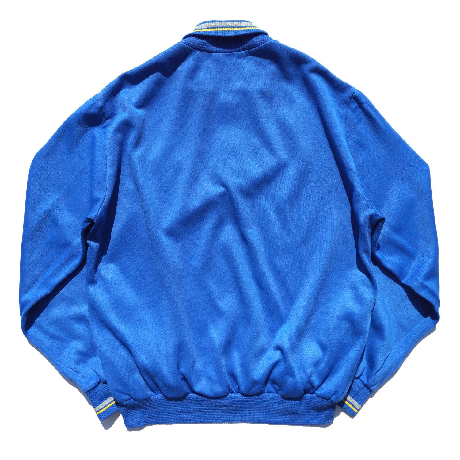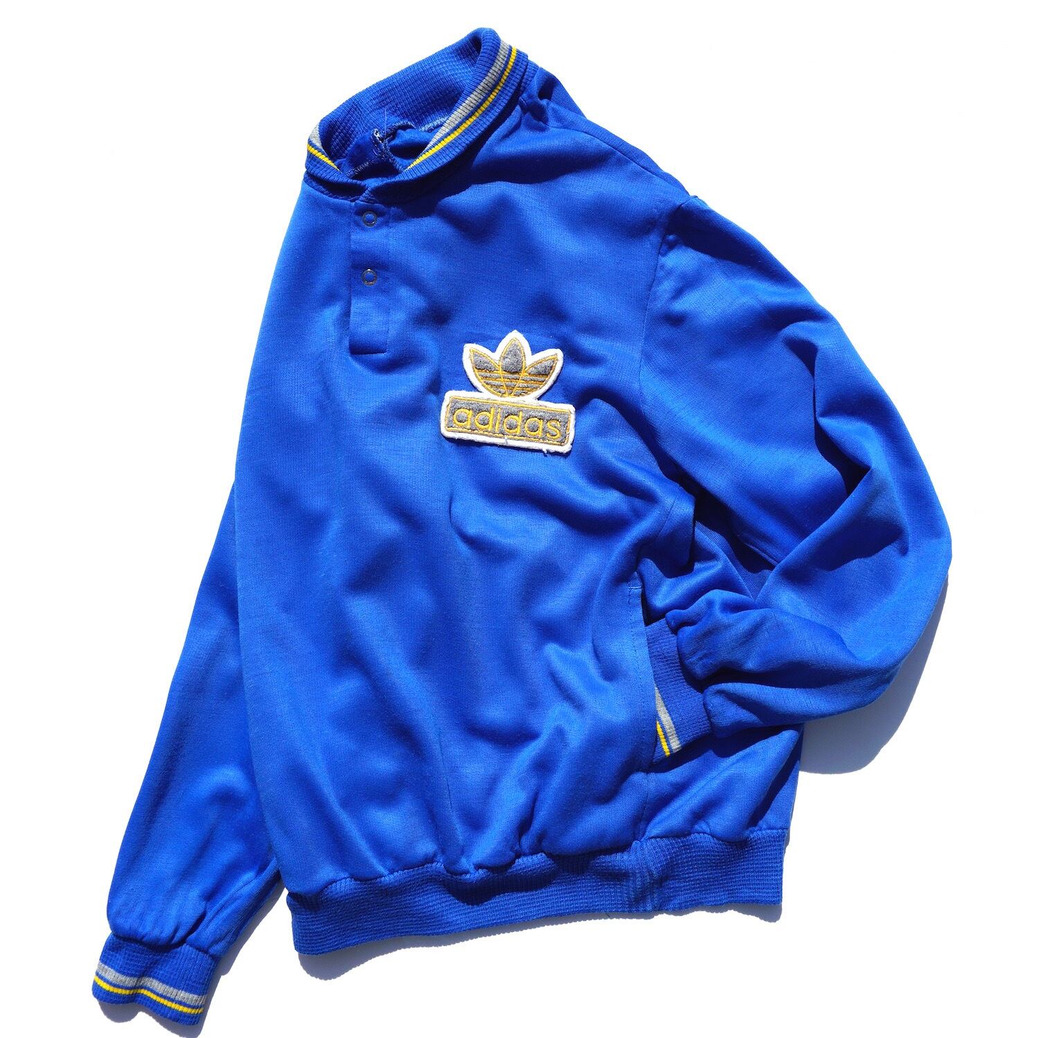 1970’s FRANCE製 [adidas] ショールカラー&ヘンリーネック ポケット付 アクリルスウェット ブルー 表記(M) アディダス フランス ヴィンテージ