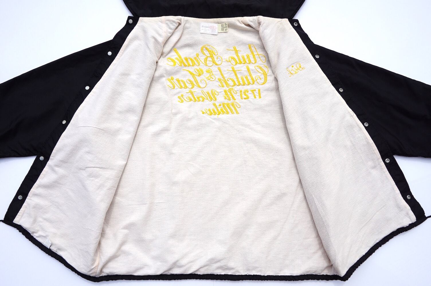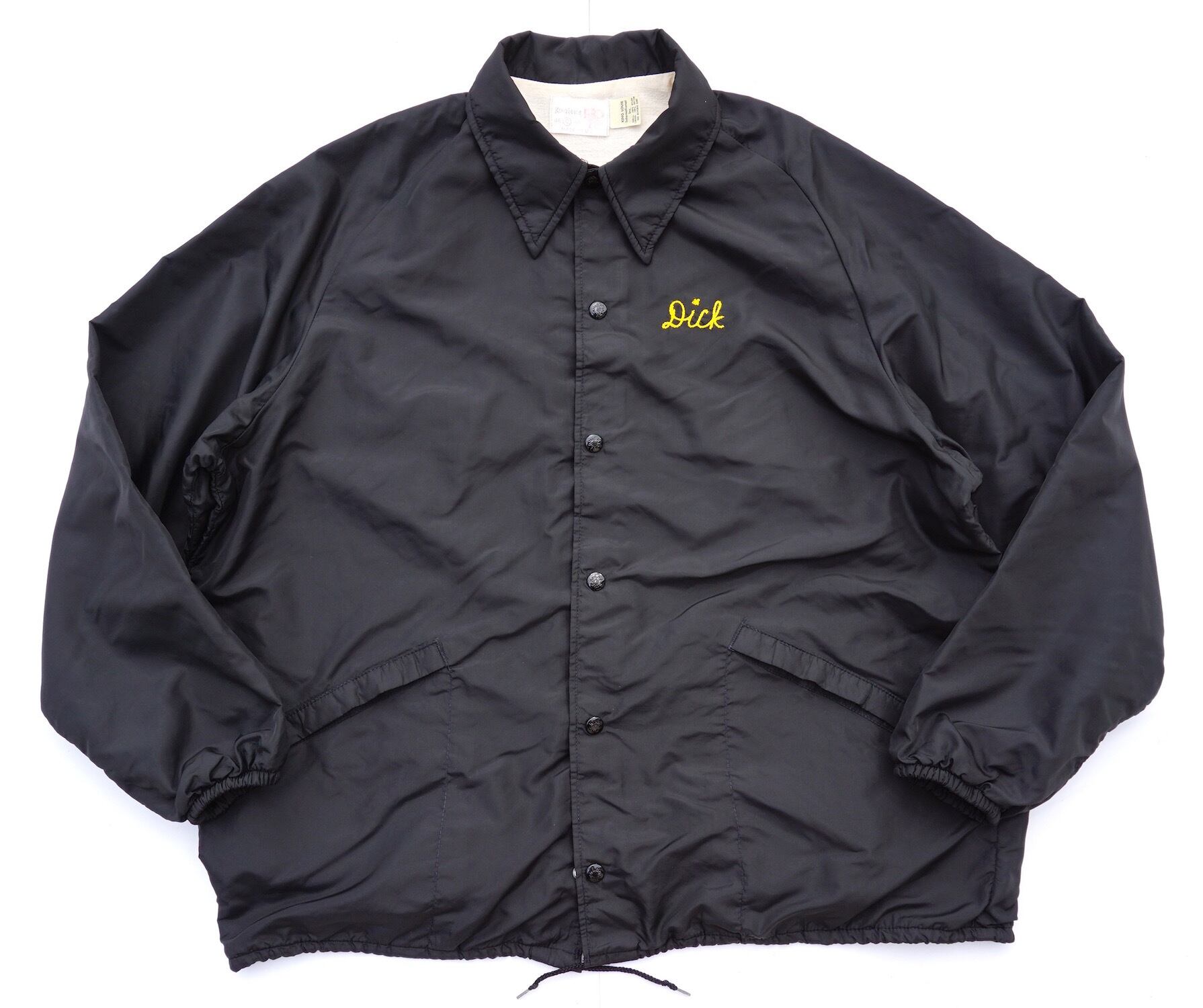 左胸と背中にノリの良い4段チェーンステッチが入った、ナイロンコーチジャケット。