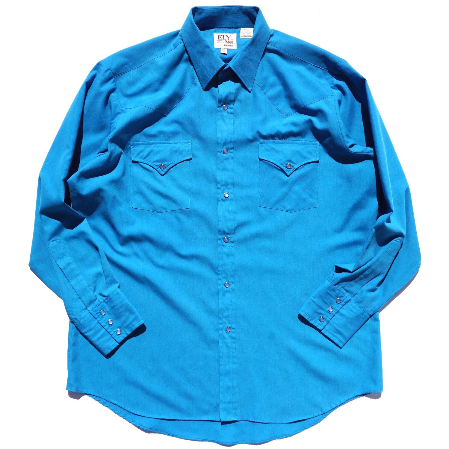 1990’s [ELY] L/S ウエスタンシャツ ターコイズブルー 実寸(L程度) ヴィンテージ