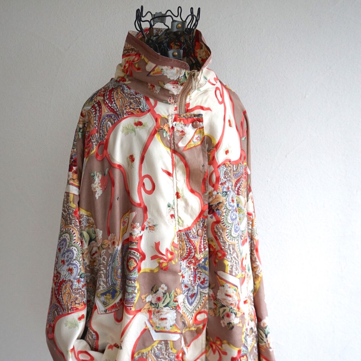 カラーリングの良いペイズリー×フローラルパターンの総柄シルクブルゾン。
