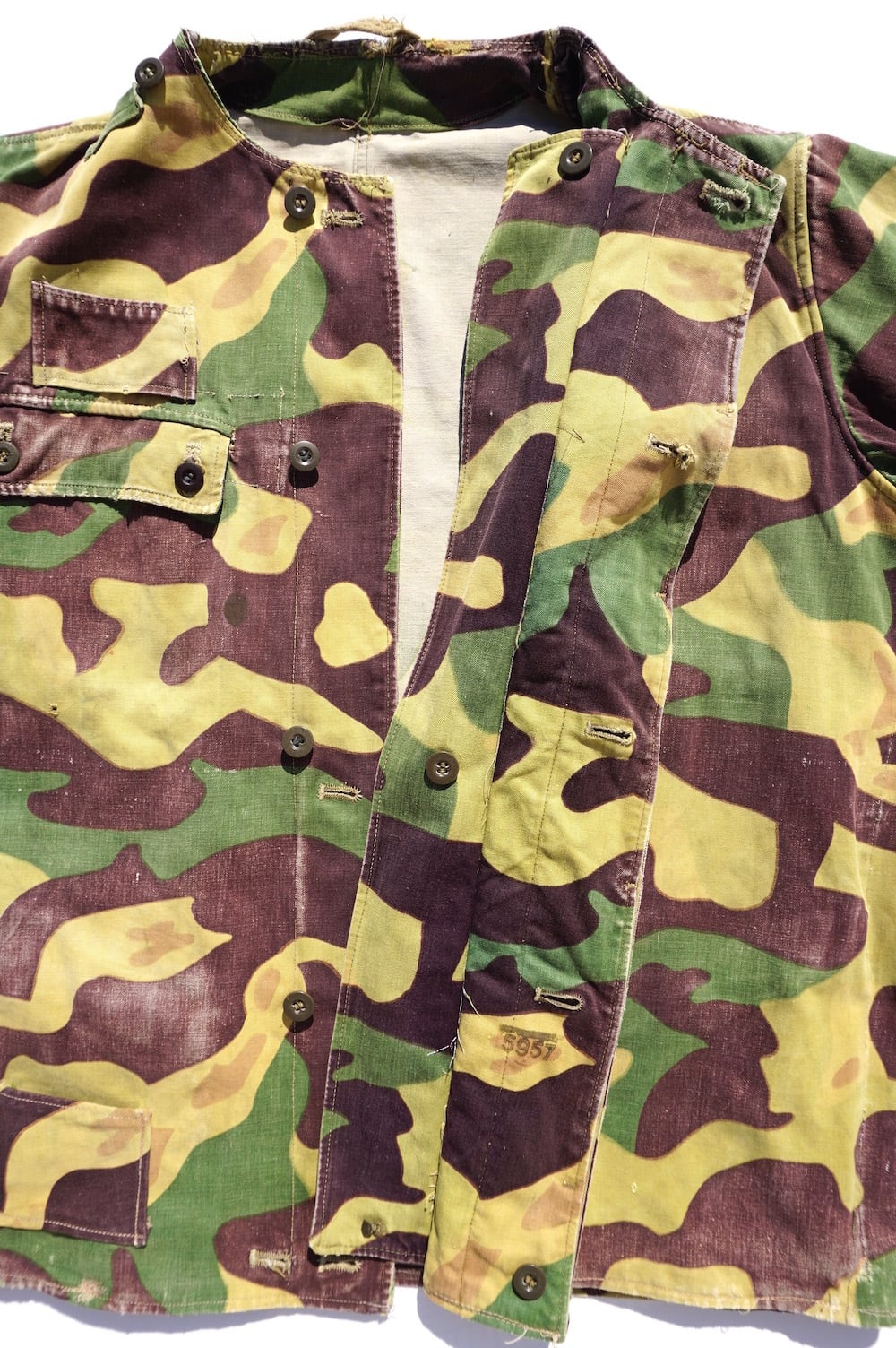 1960’s [チェコスロバキア軍] サラマンダーカモフラージュ ミリタリージャケット カラーレスカスタム 実寸(L程度) ヴィンテージ