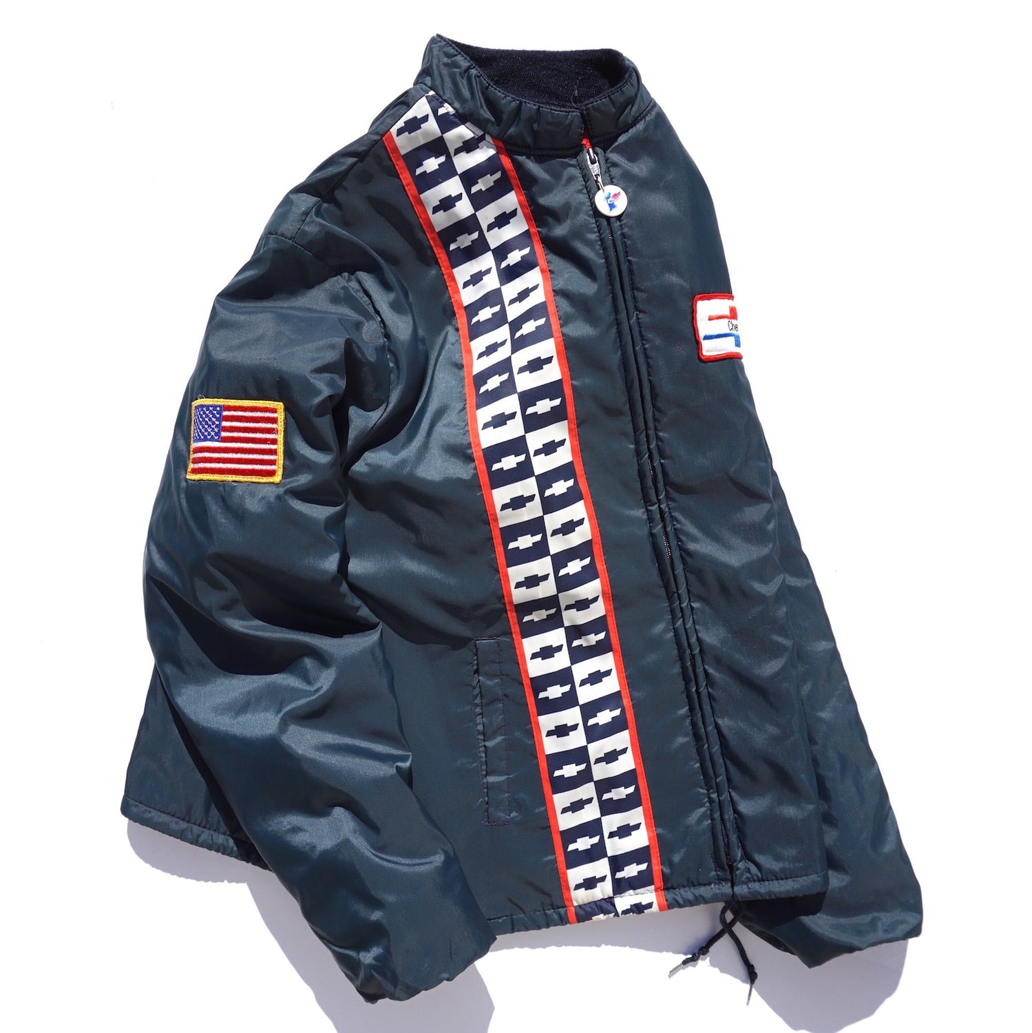 1970’s USA製 [horizon] CHEVROLET ナイロンレーシングジャケット キルティングライニング付 ネイビー 表記(L) シボレー ヴィンテージ